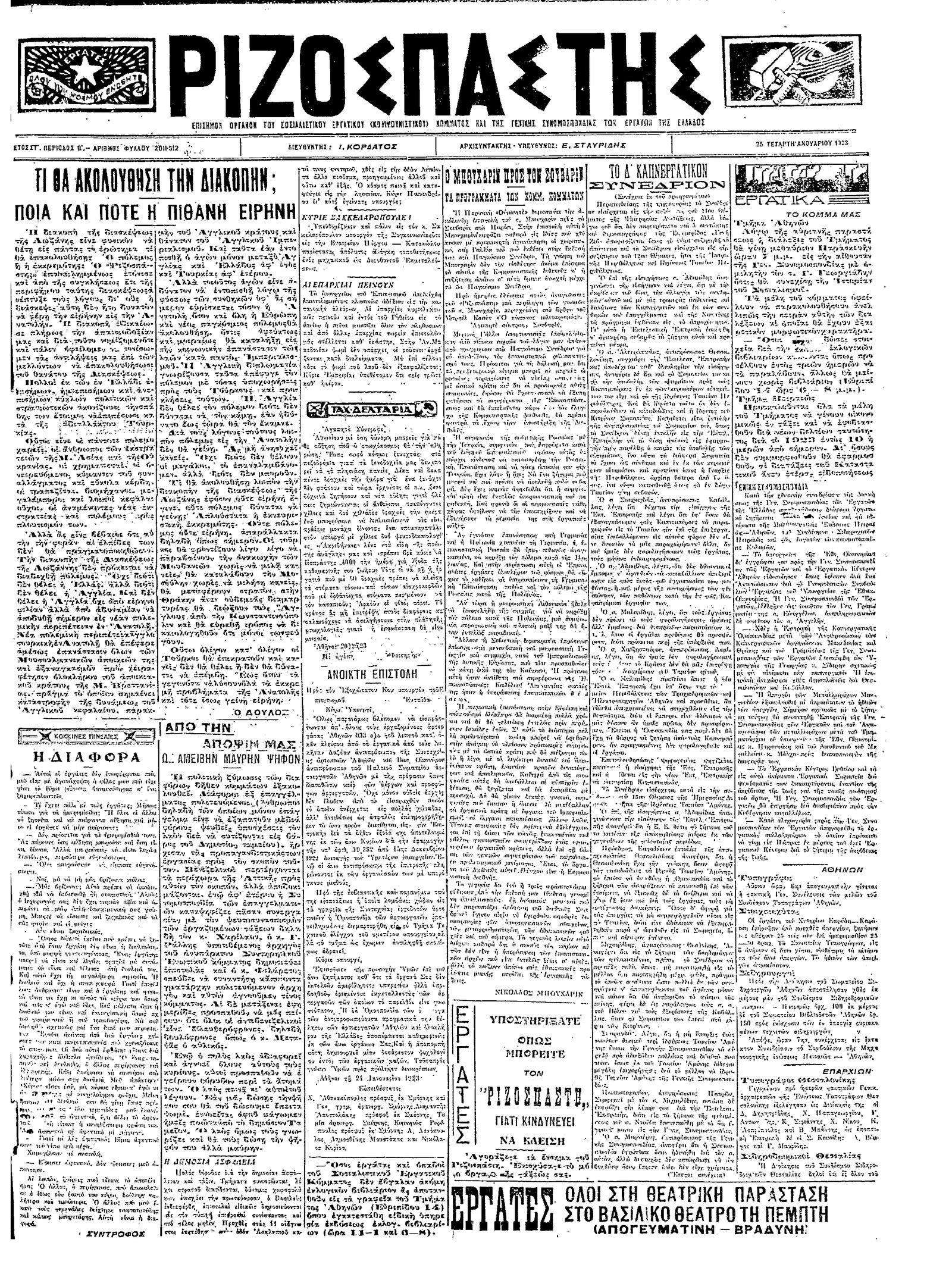 Ριζοσπάστης 25/01/1923
