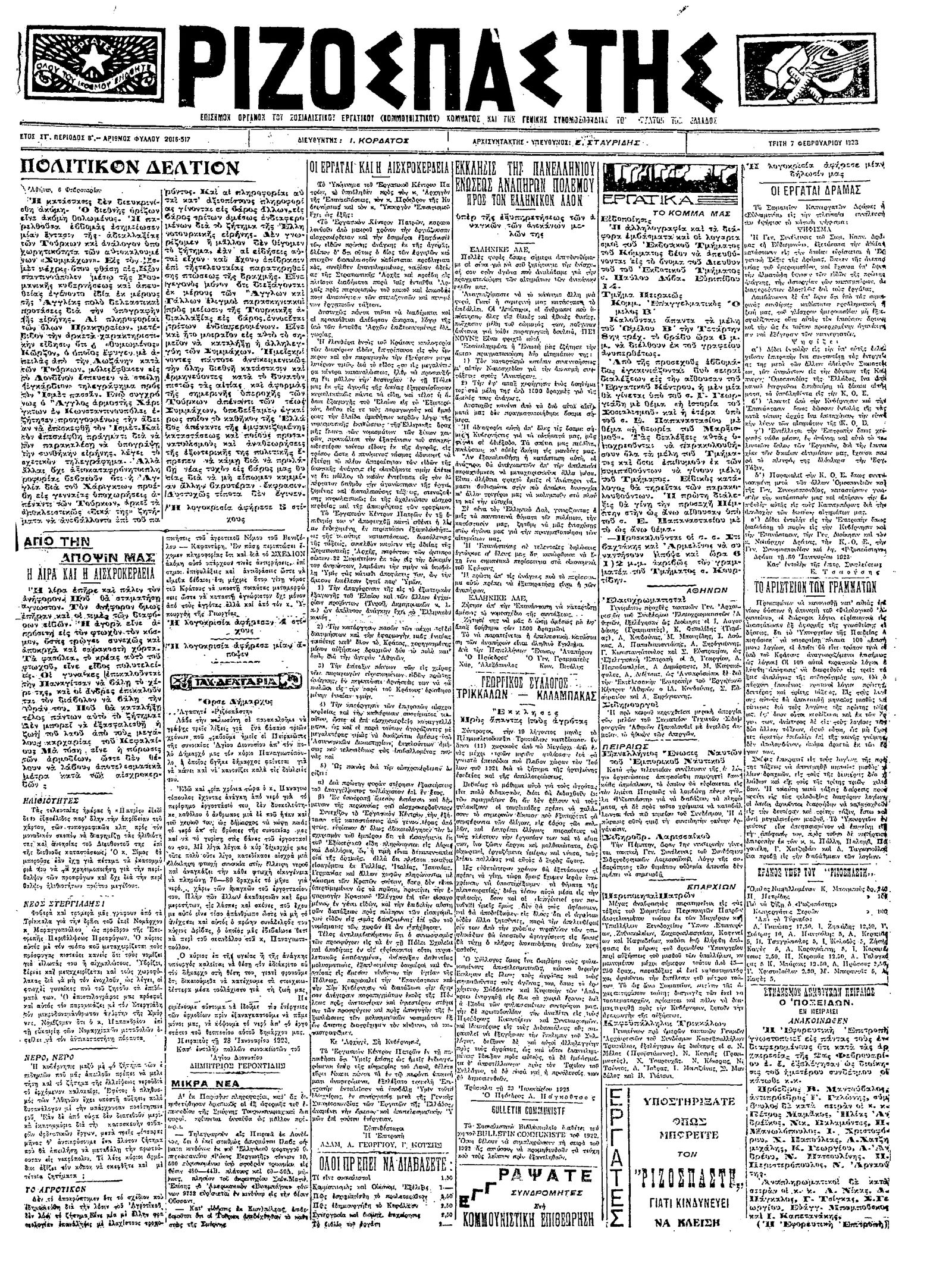 Ριζοσπάστης 07/02/1923