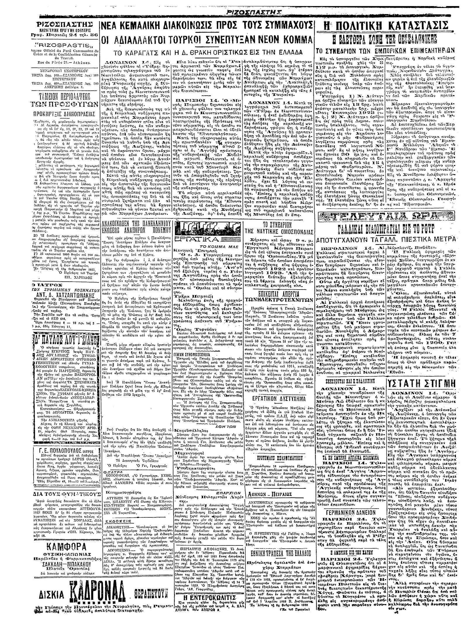 Ριζοσπάστης 15/02/1923