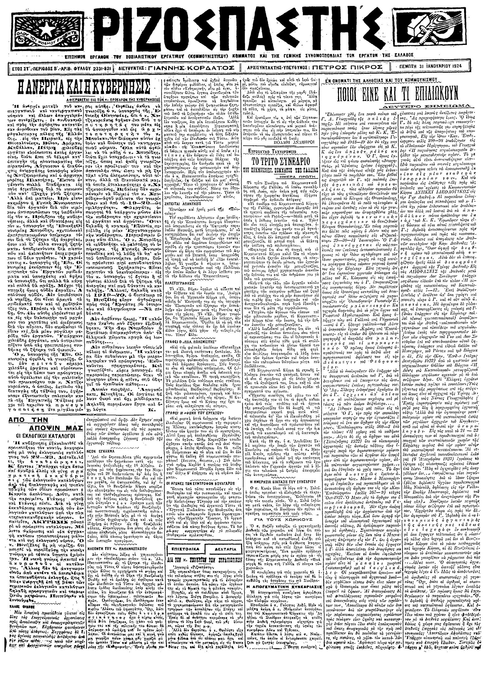 Ριζοσπάστης 31/01/1924