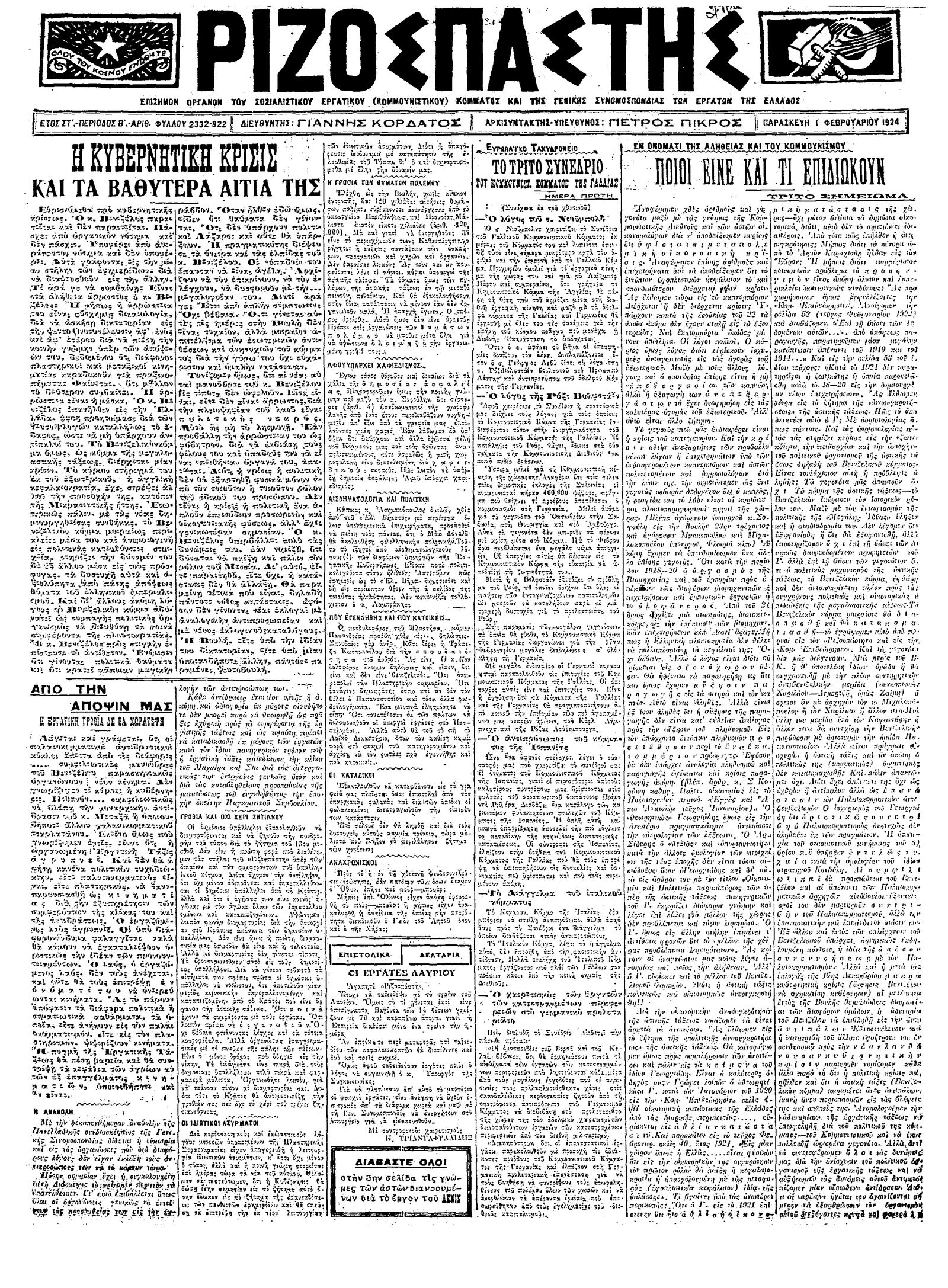 Ριζοσπάστης 01/02/1924