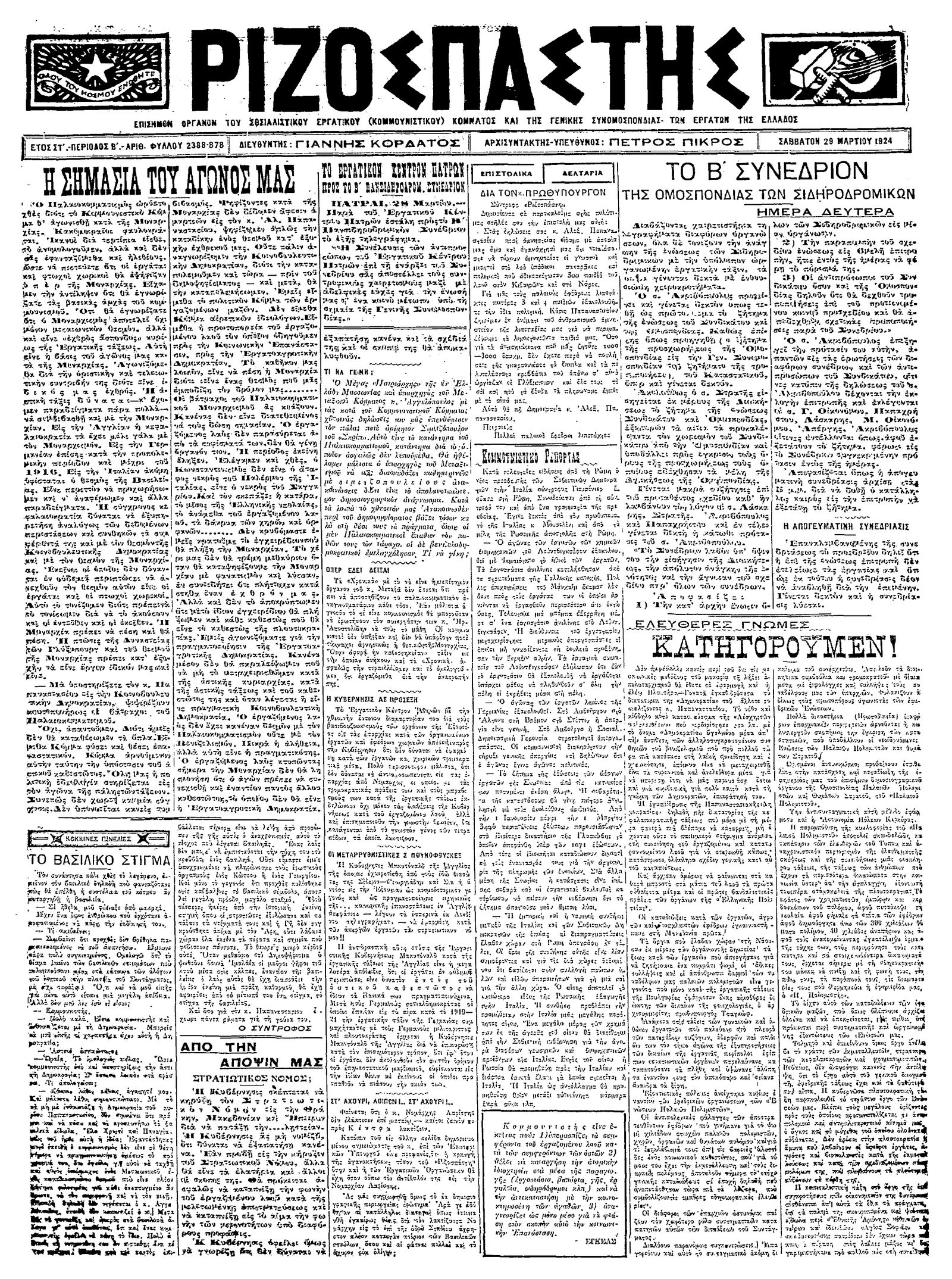 Ριζοσπάστης 29/03/1924