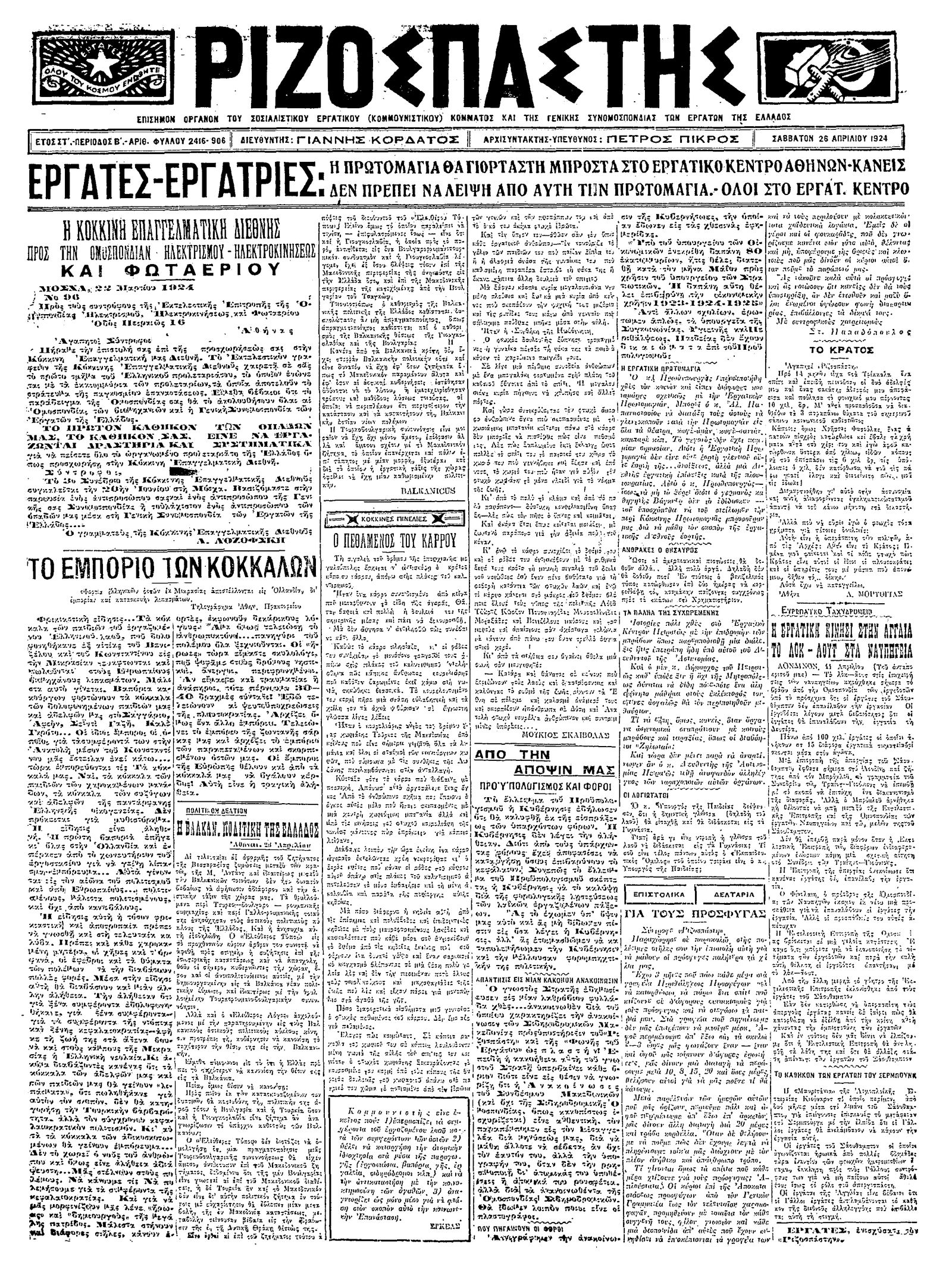 Ριζοσπάστης 26/04/1924