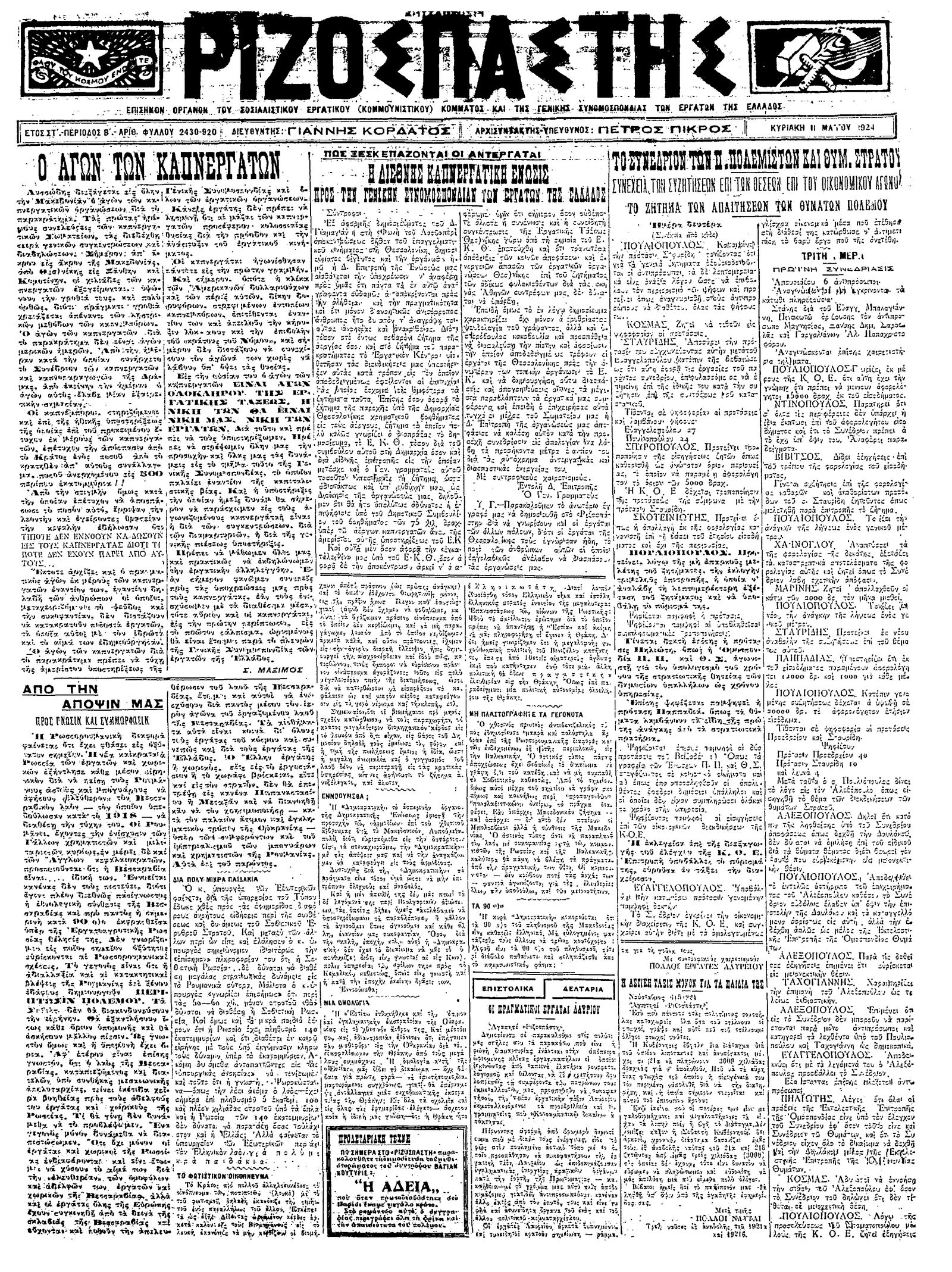 Ριζοσπάστης 11/05/1924