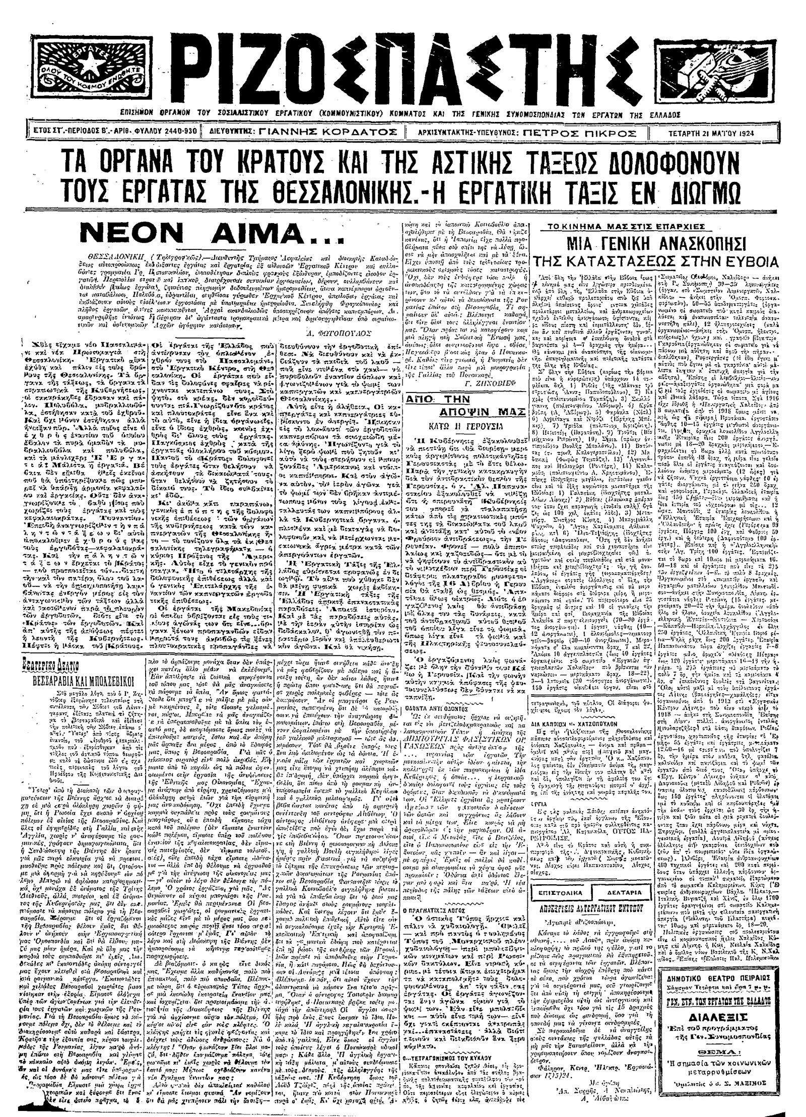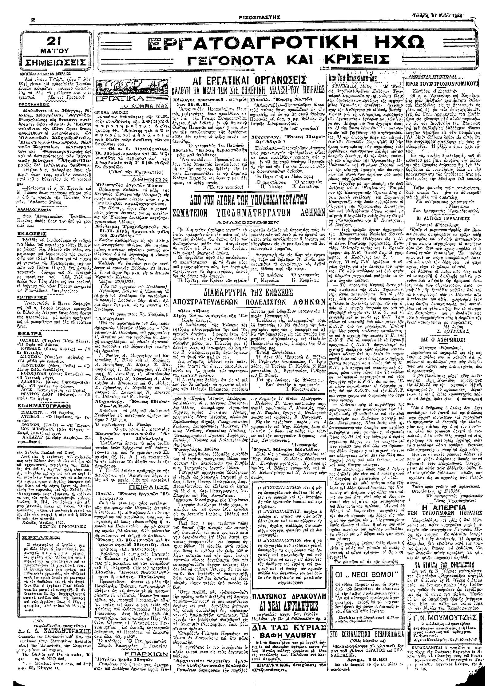 Ριζοσπάστης 21/05/1924
