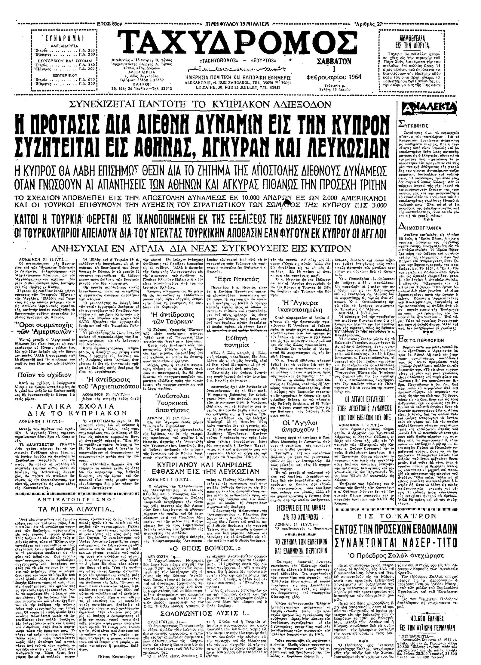 Ταχυδρόμος 01/02/1964