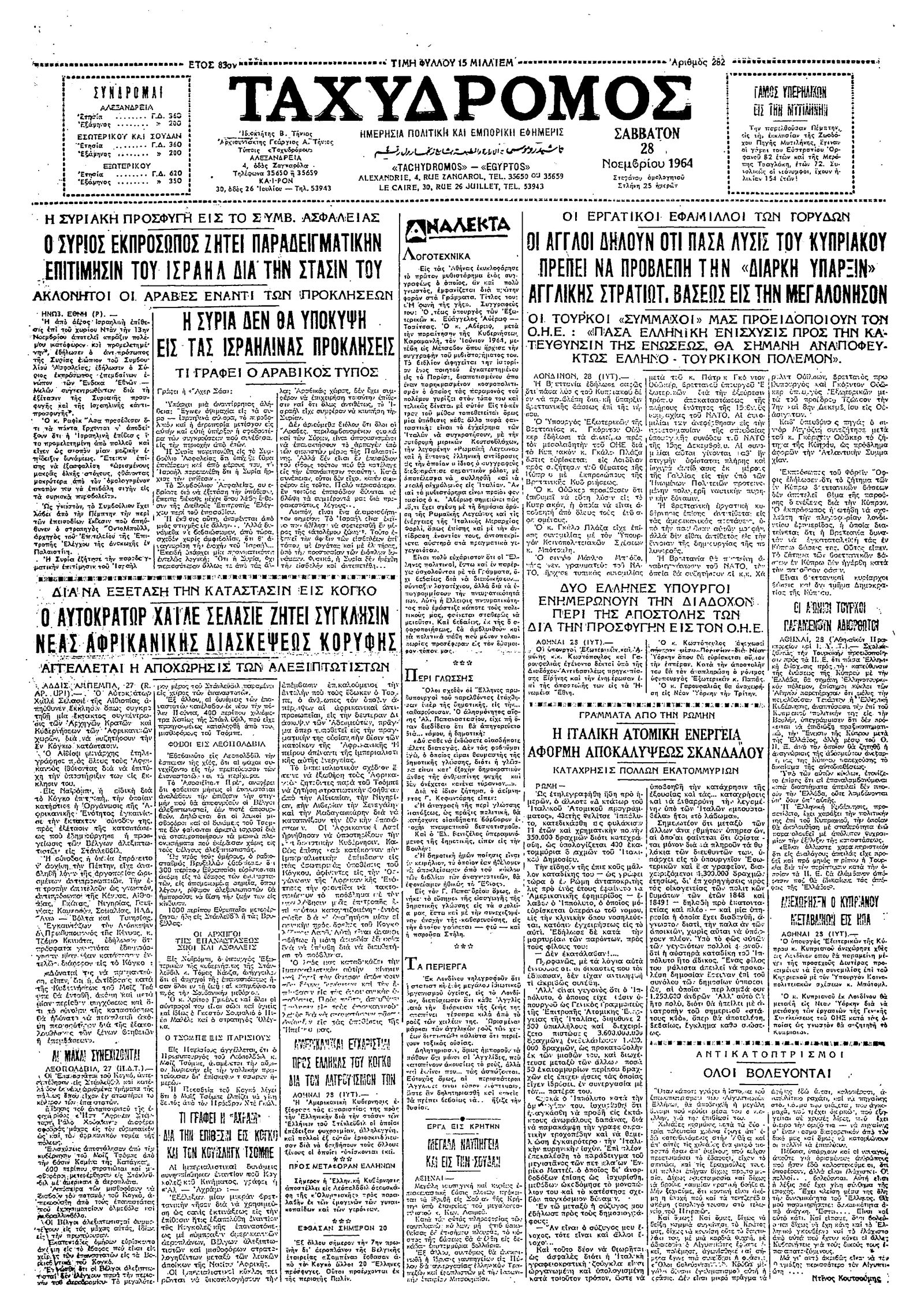 Ταχυδρόμος 28/11/1964