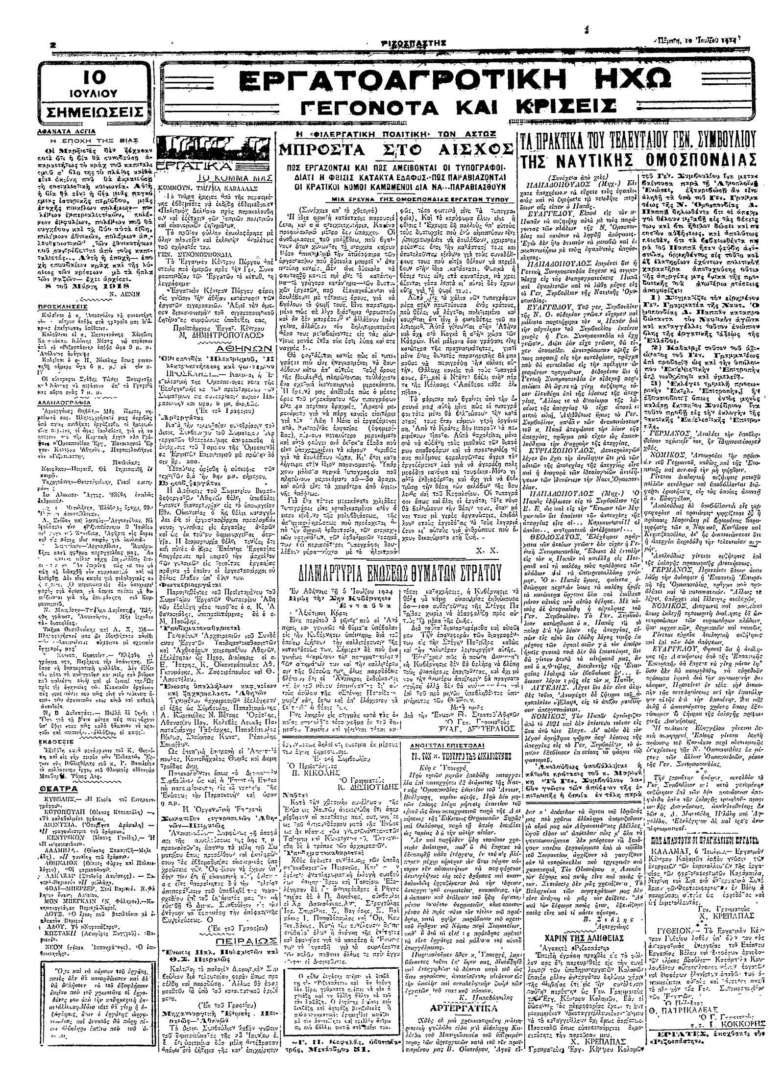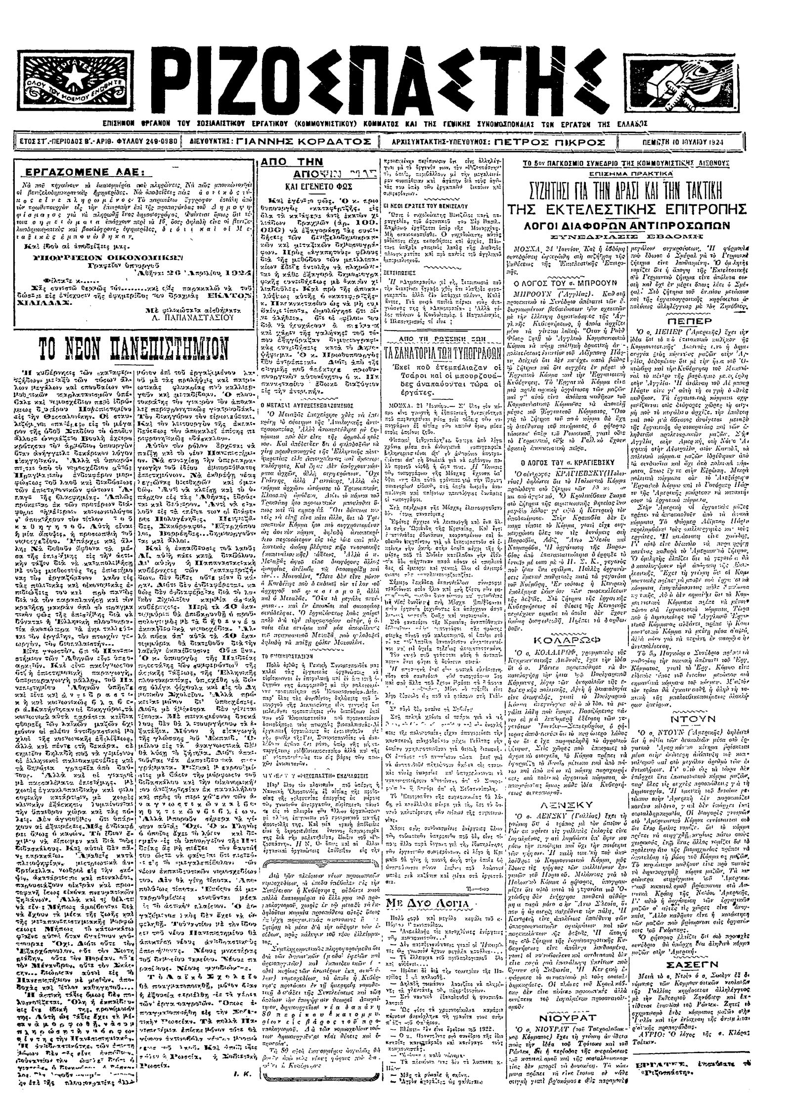 Ριζοσπάστης 10/07/1924
