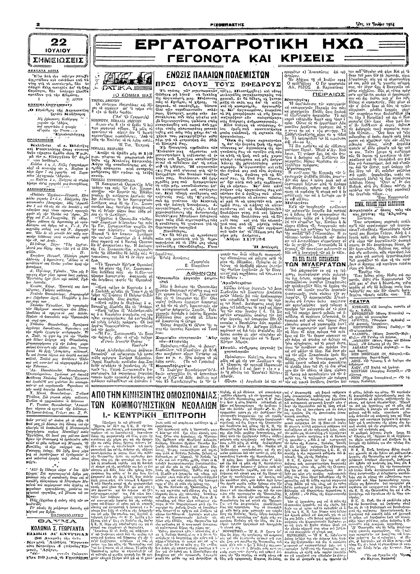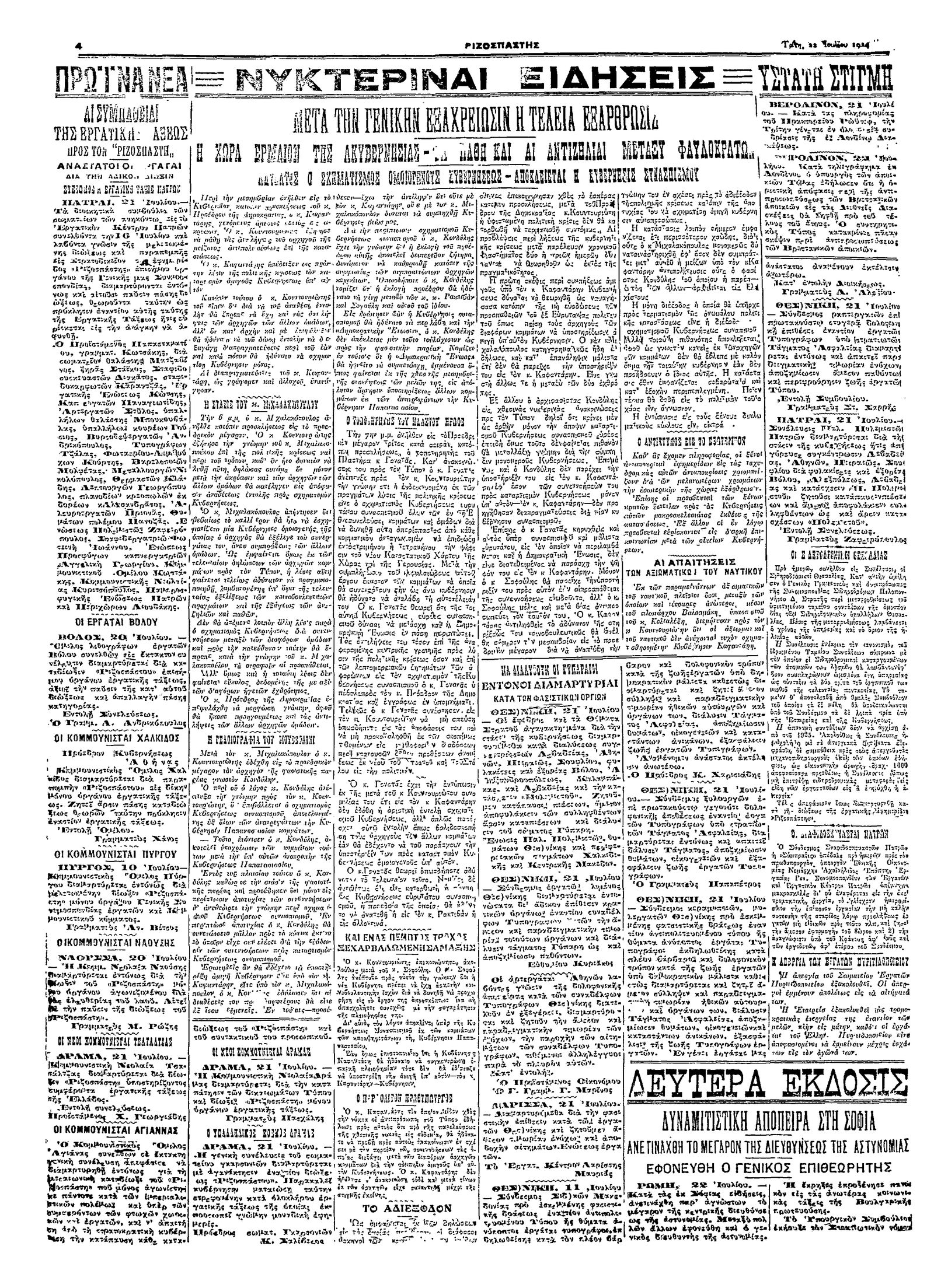 Ριζοσπάστης 22/07/1924