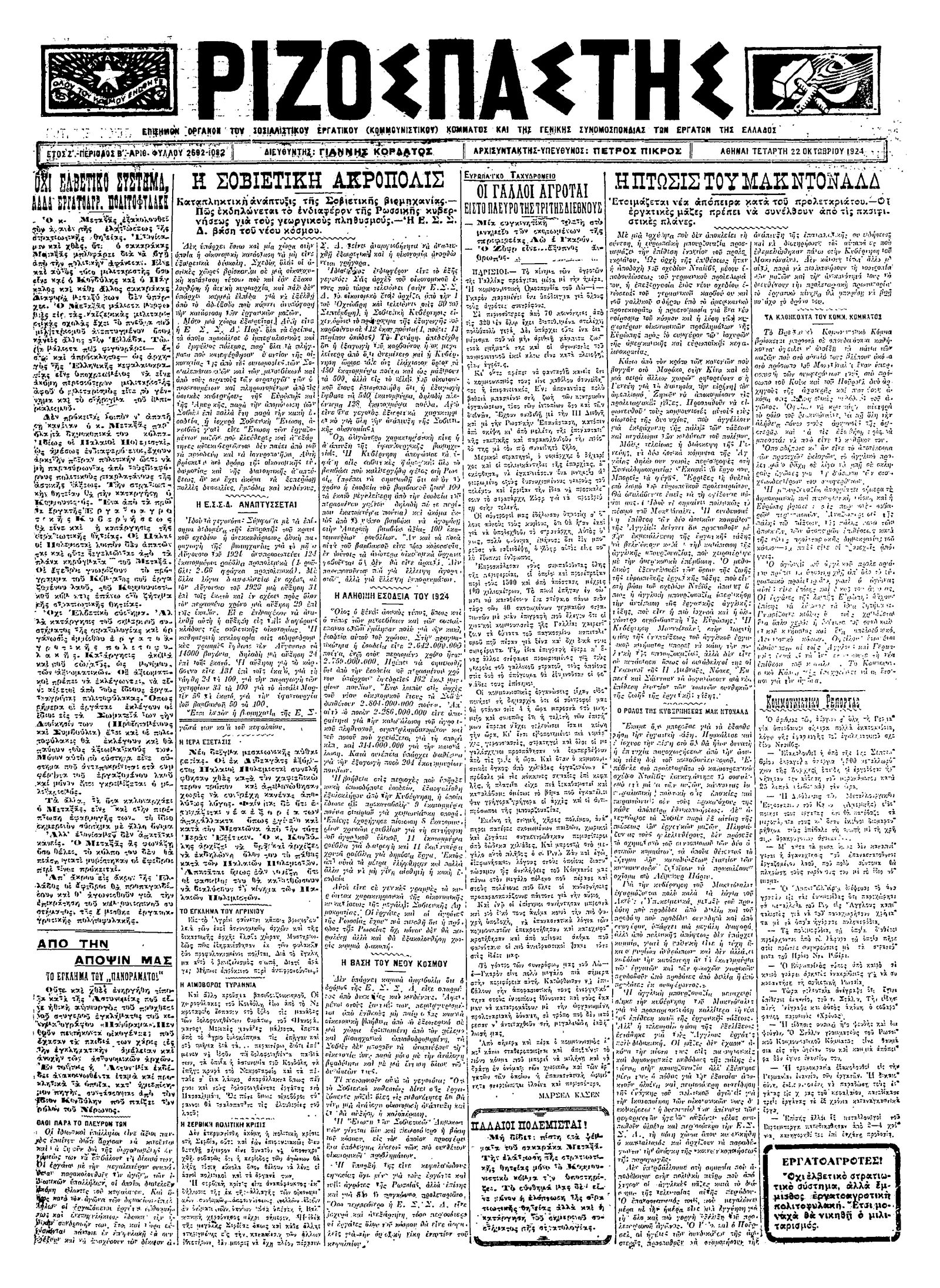 Ριζοσπάστης 22/10/1924