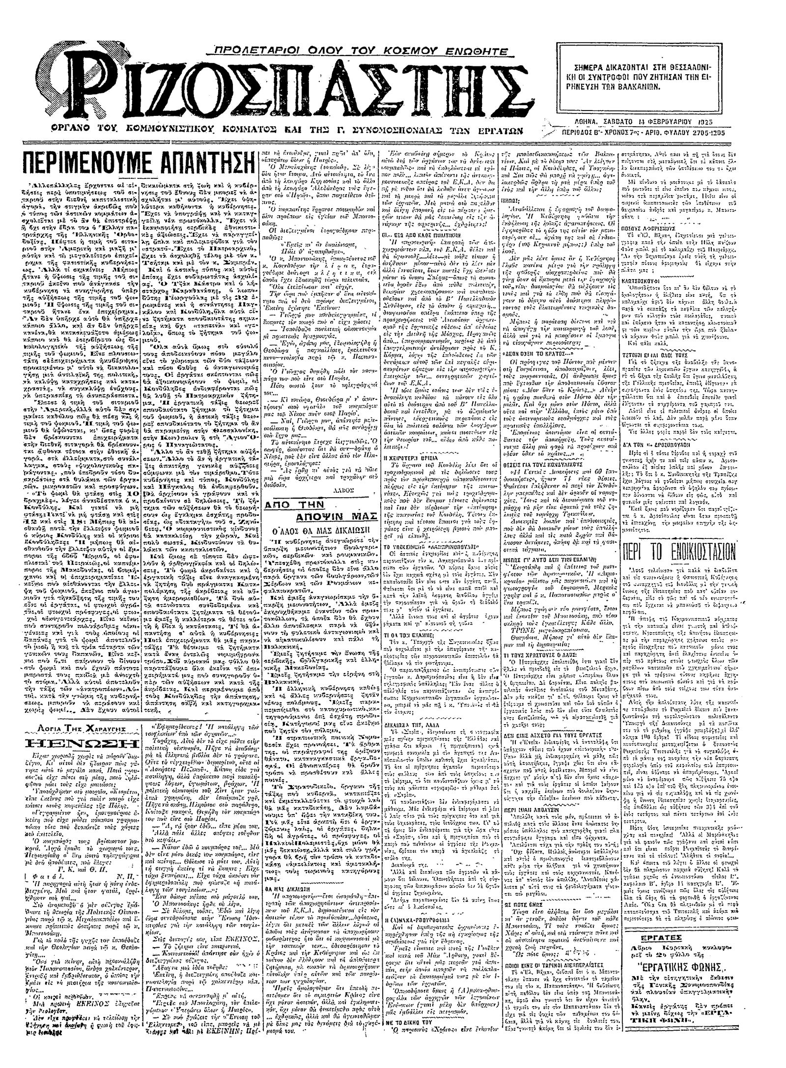 Ριζοσπάστης 14/02/1925