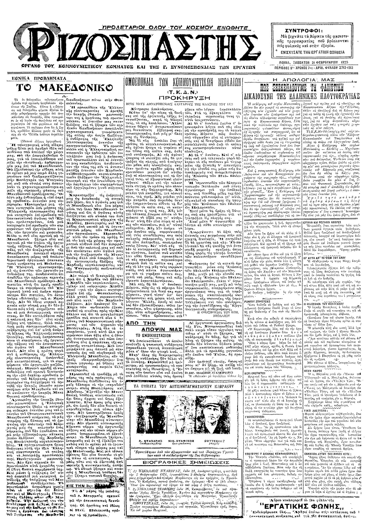 Ριζοσπάστης 21/02/1925