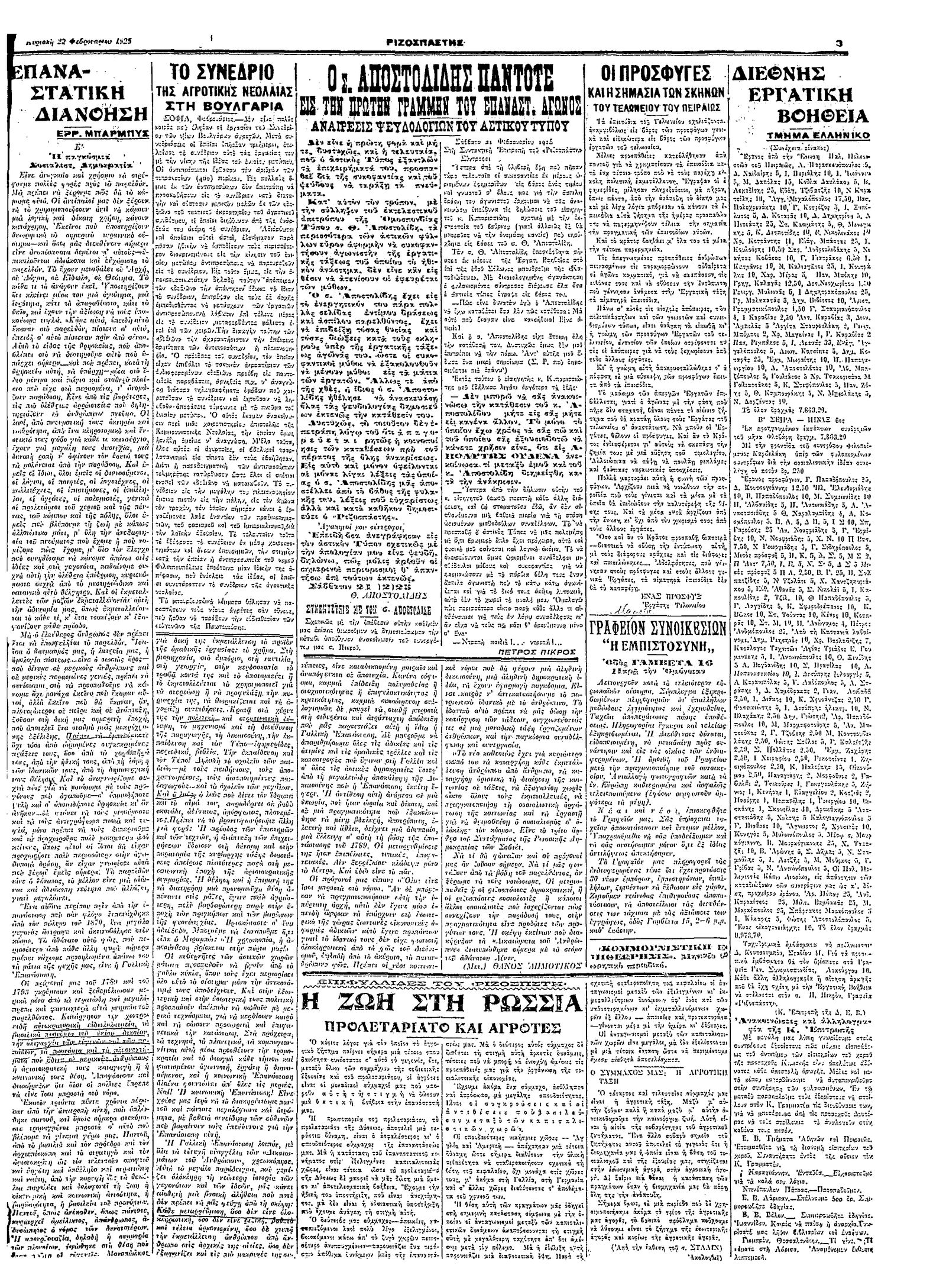 Ριζοσπάστης 22/02/1925