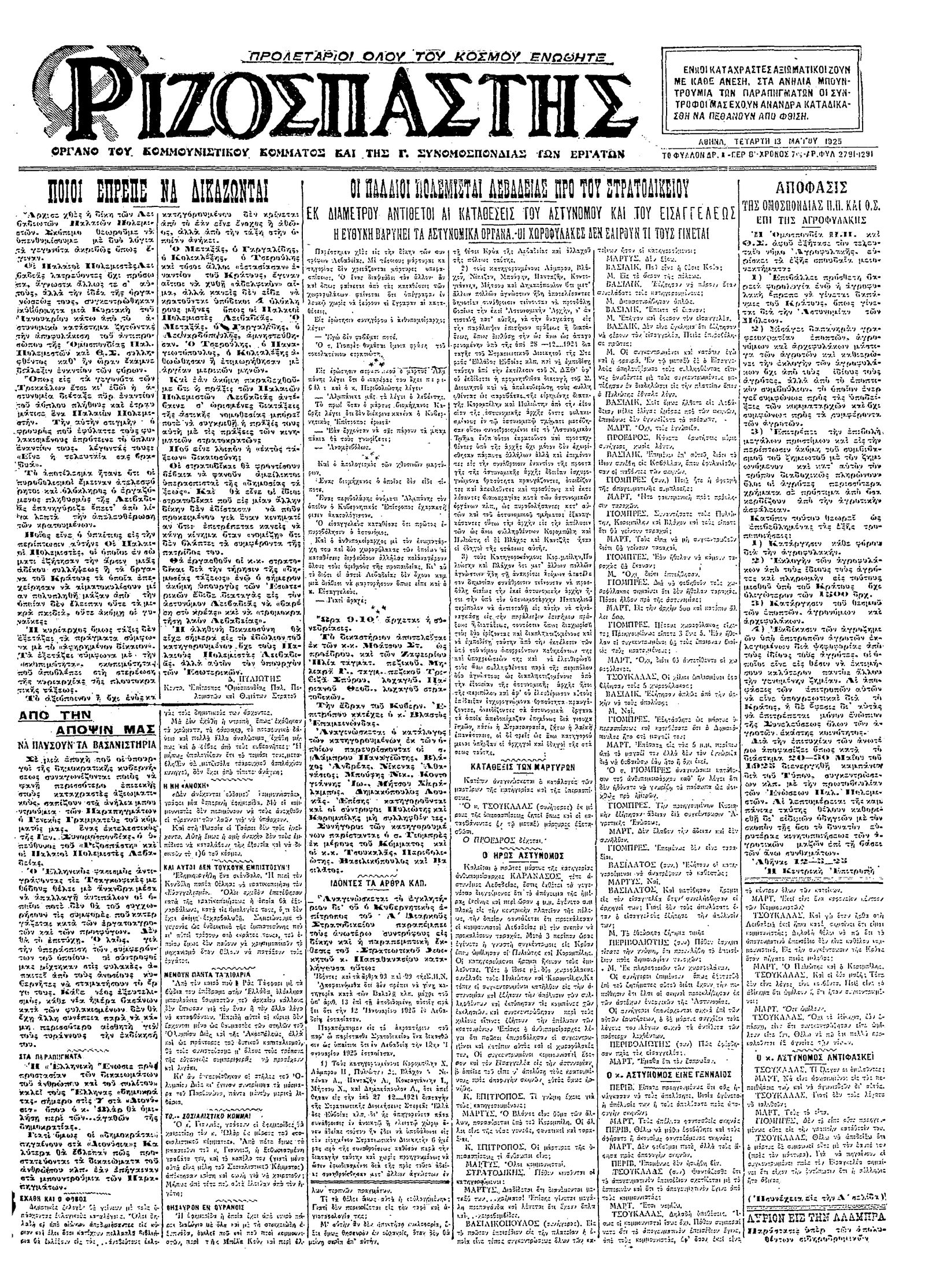 Ριζοσπάστης 13/05/1925