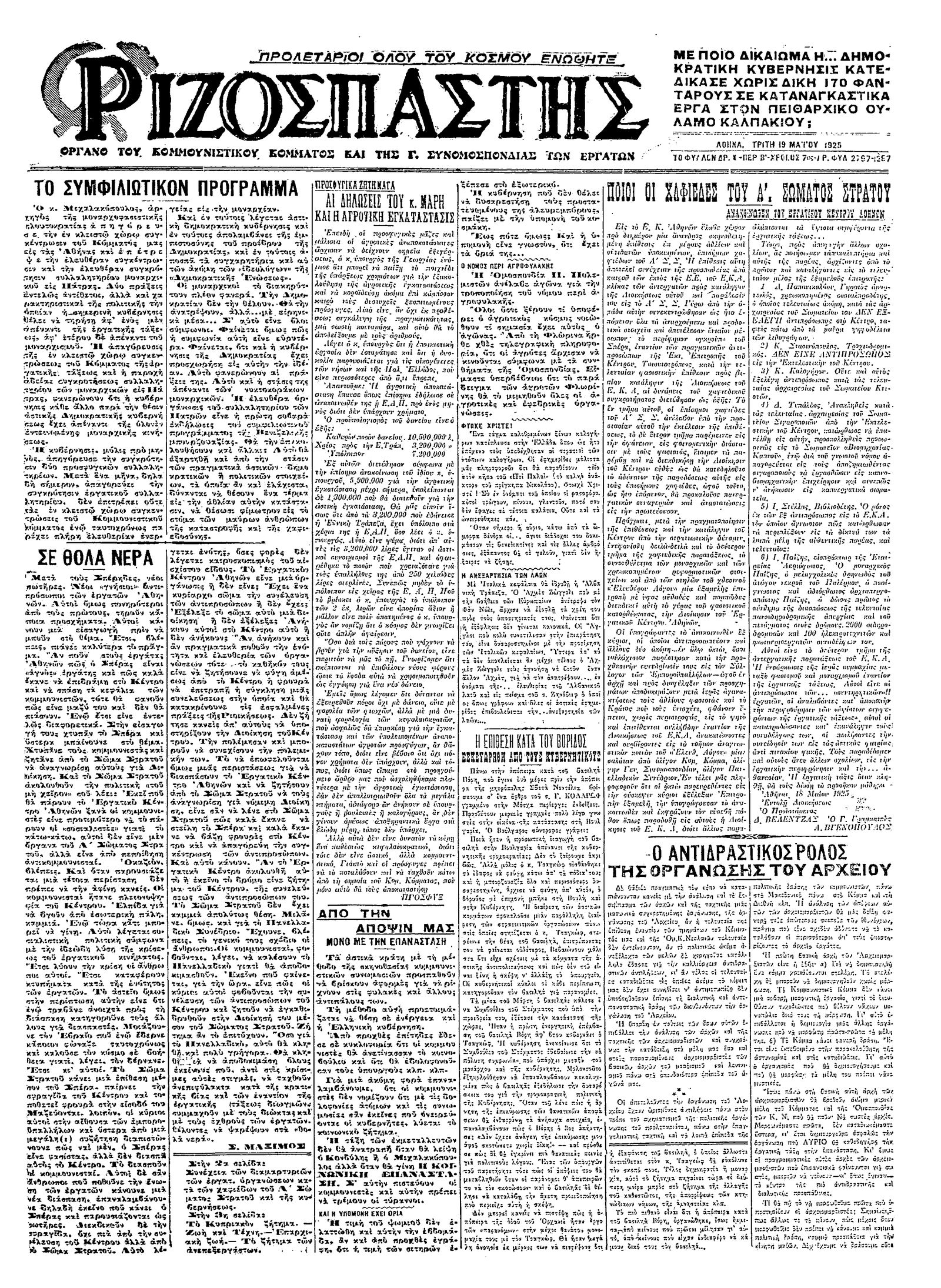 Ριζοσπάστης 19/05/1925