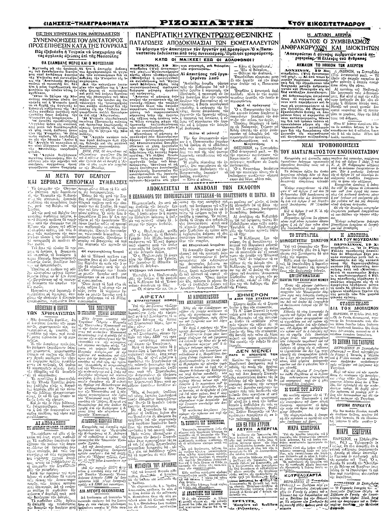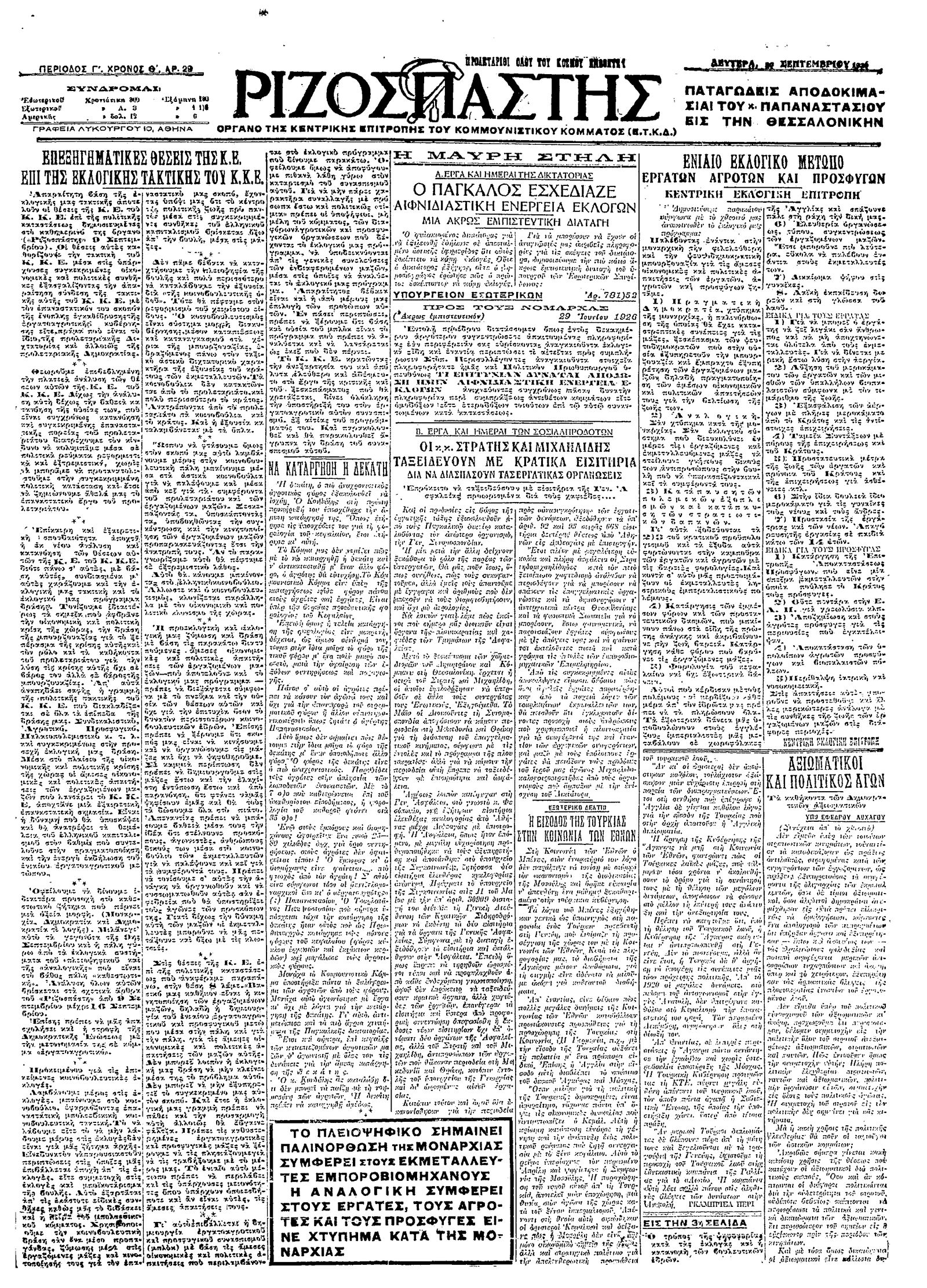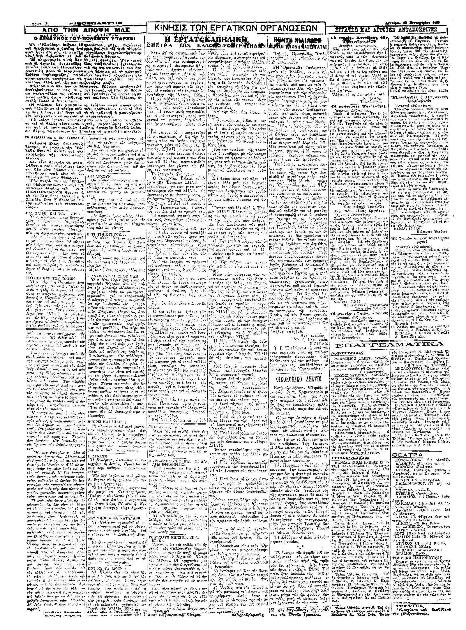 Ριζοσπάστης 20/09/1926