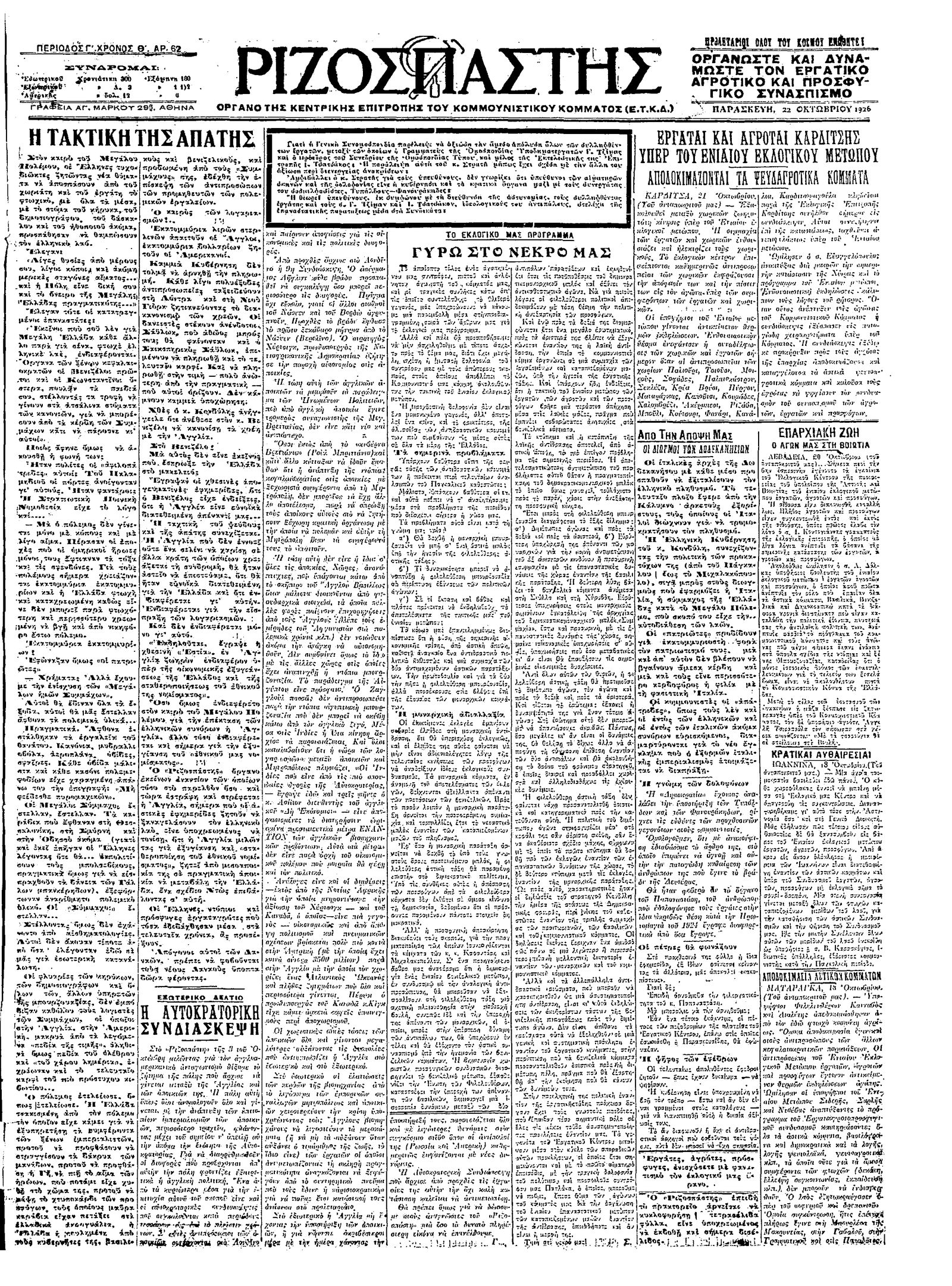 Ριζοσπάστης 22/10/1926