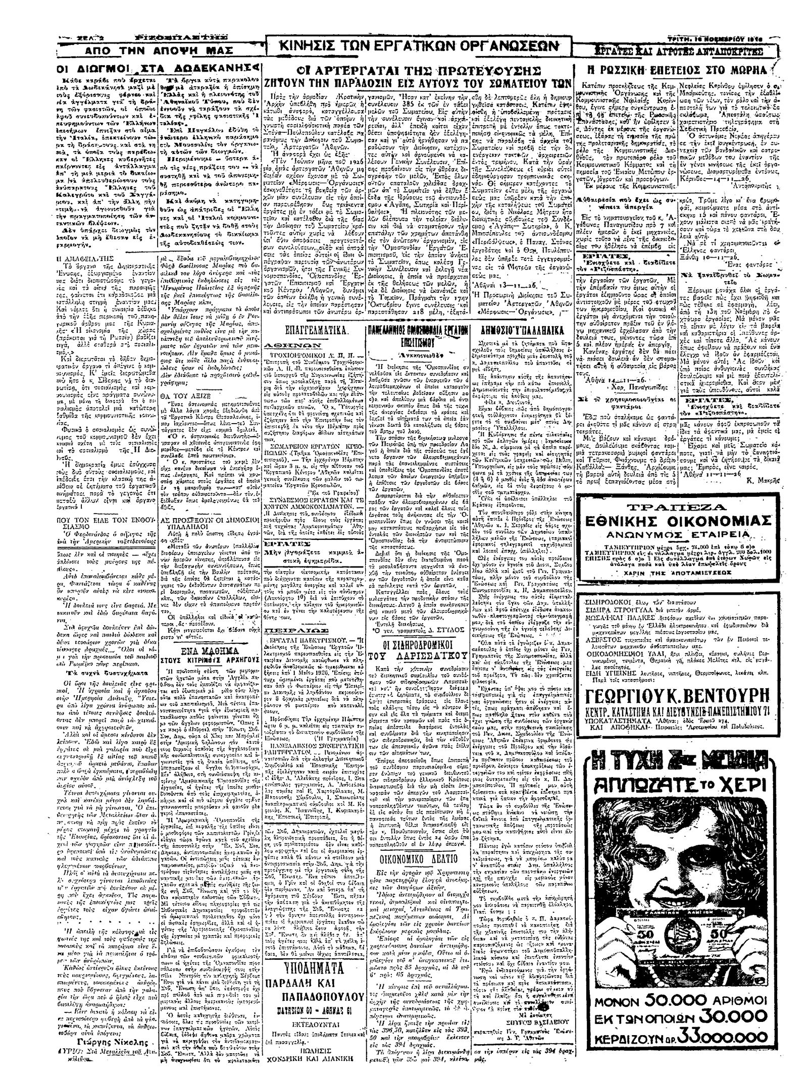 Ριζοσπάστης 16/11/1926