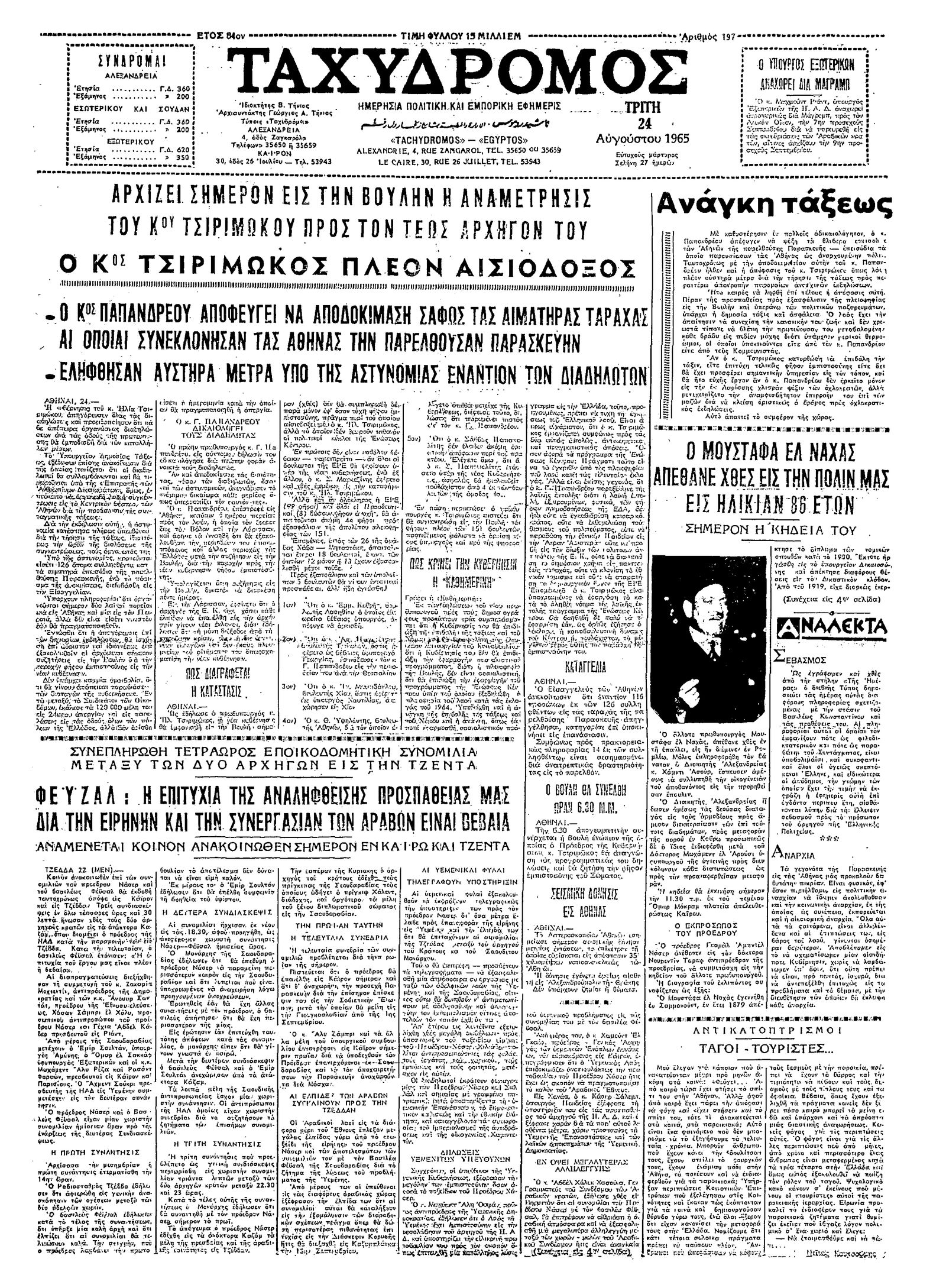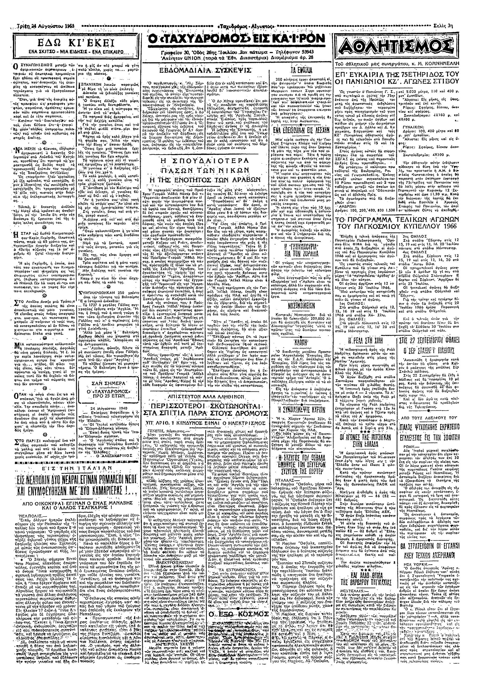 Ταχυδρόμος 24/08/1965