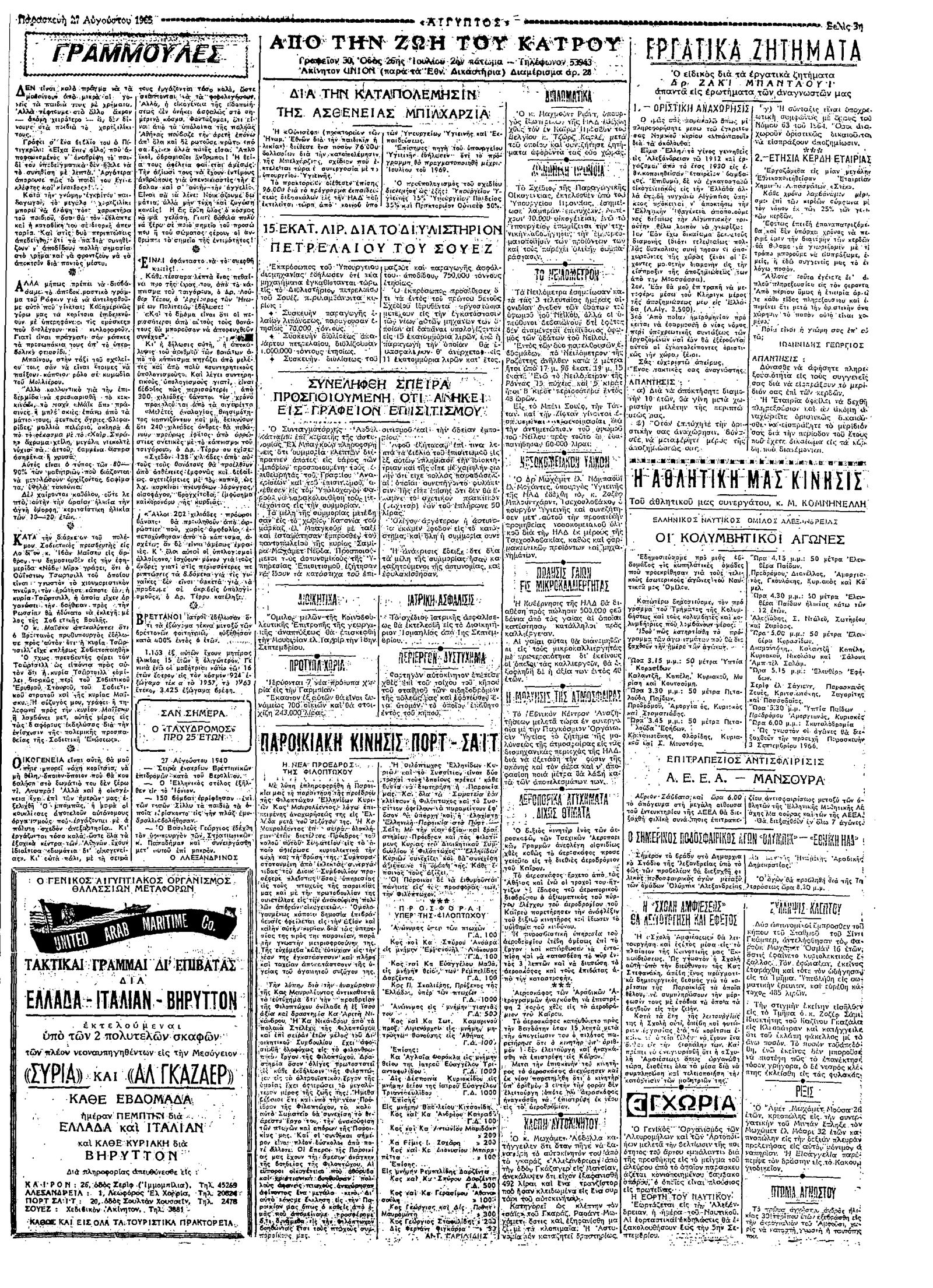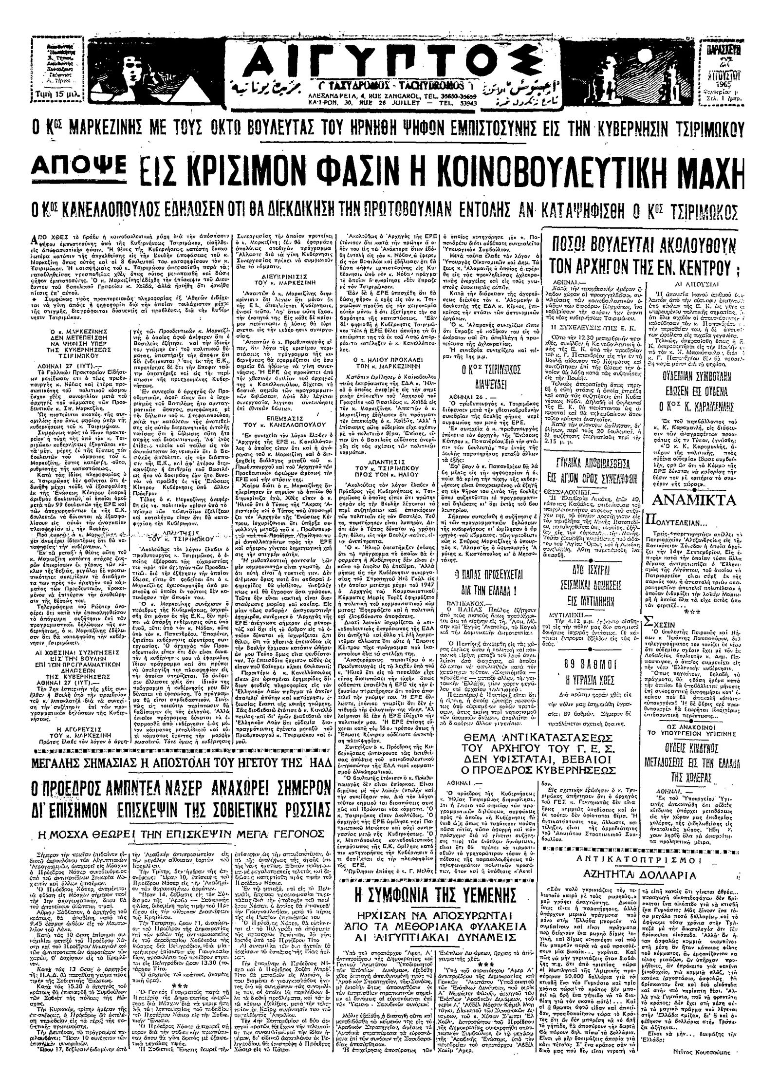 Ταχυδρόμος 27/08/1965