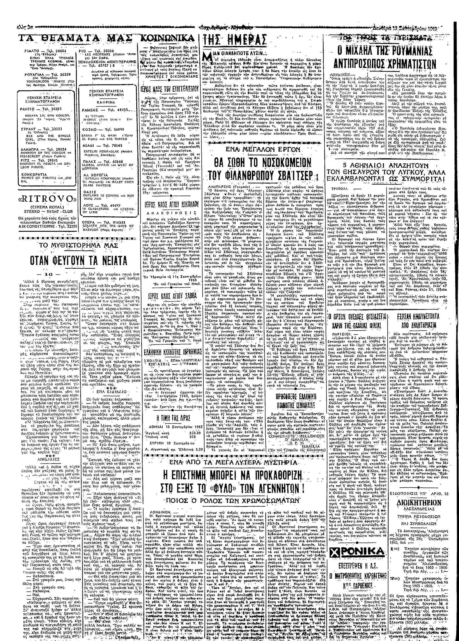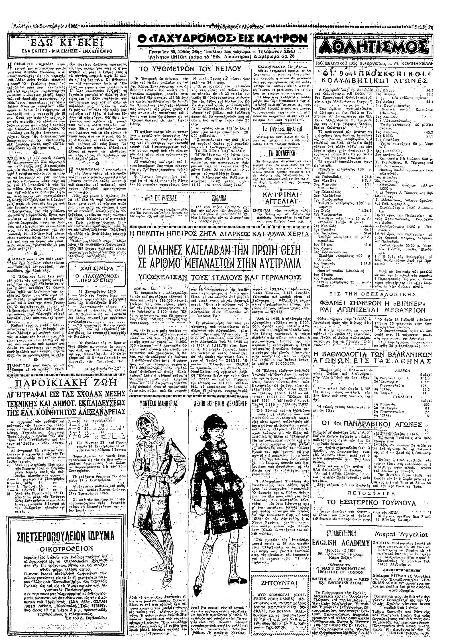 Ταχυδρόμος 13/09/1965