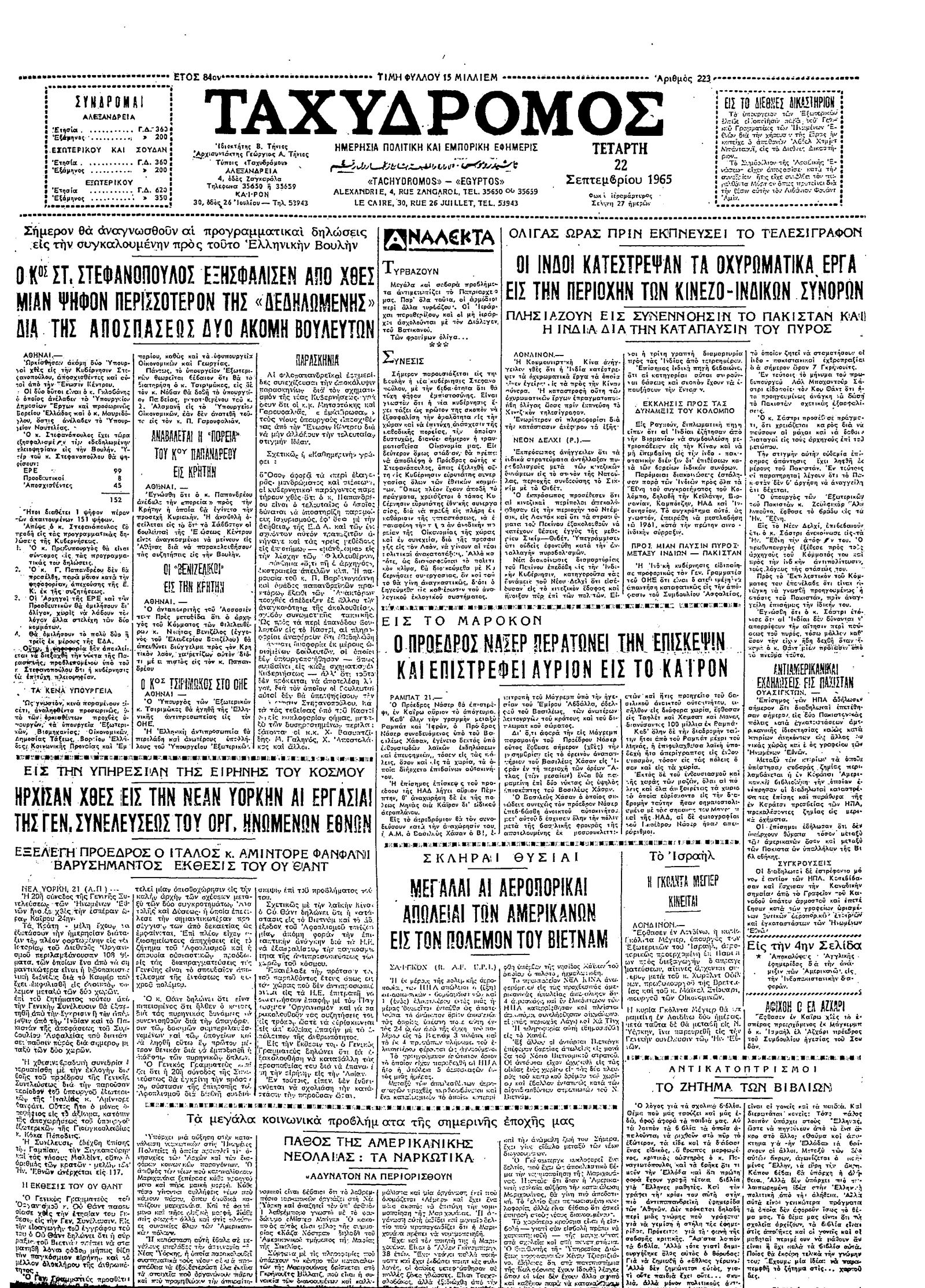 Ταχυδρόμος 22/09/1965