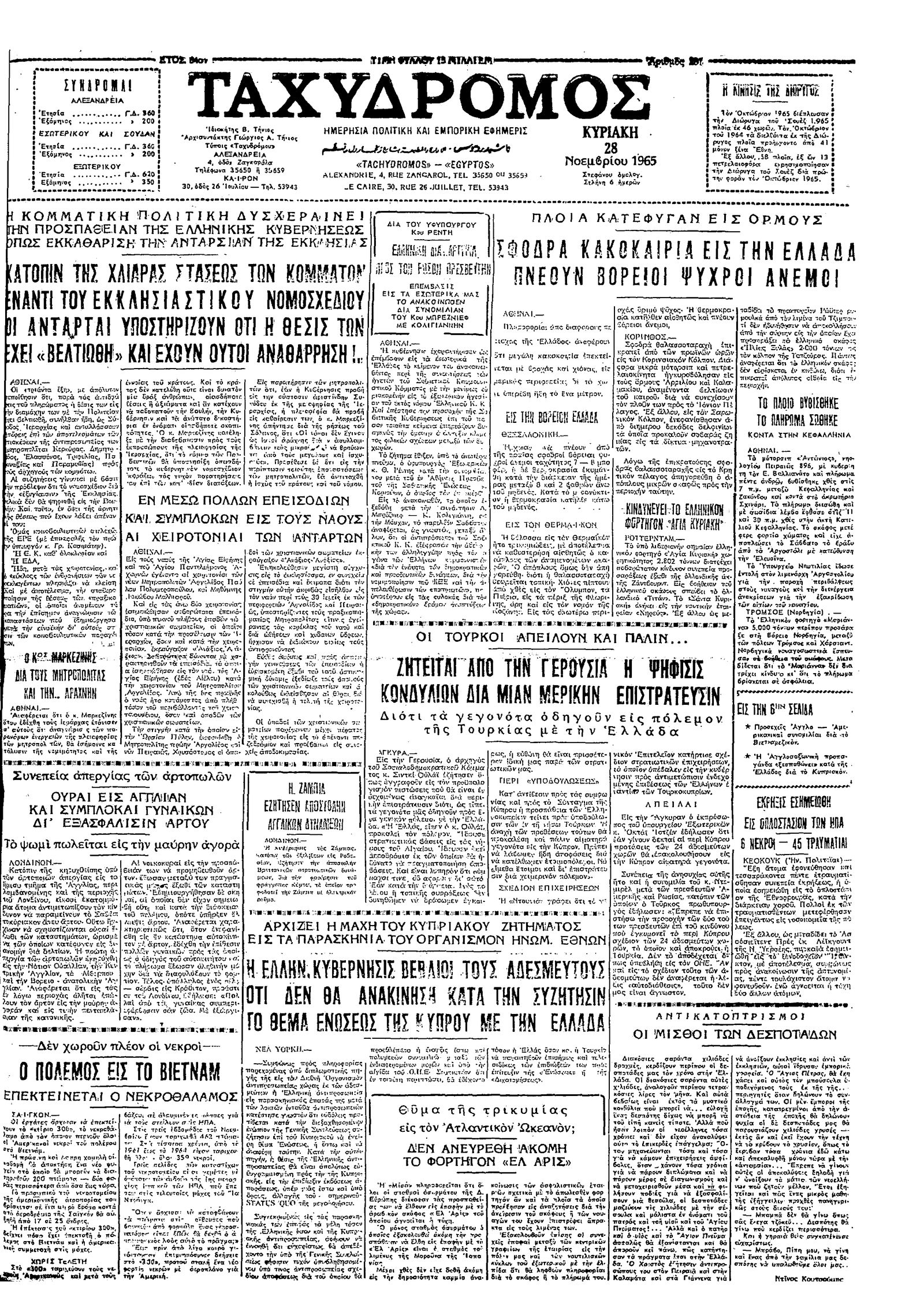 Ταχυδρόμος 28/11/1965