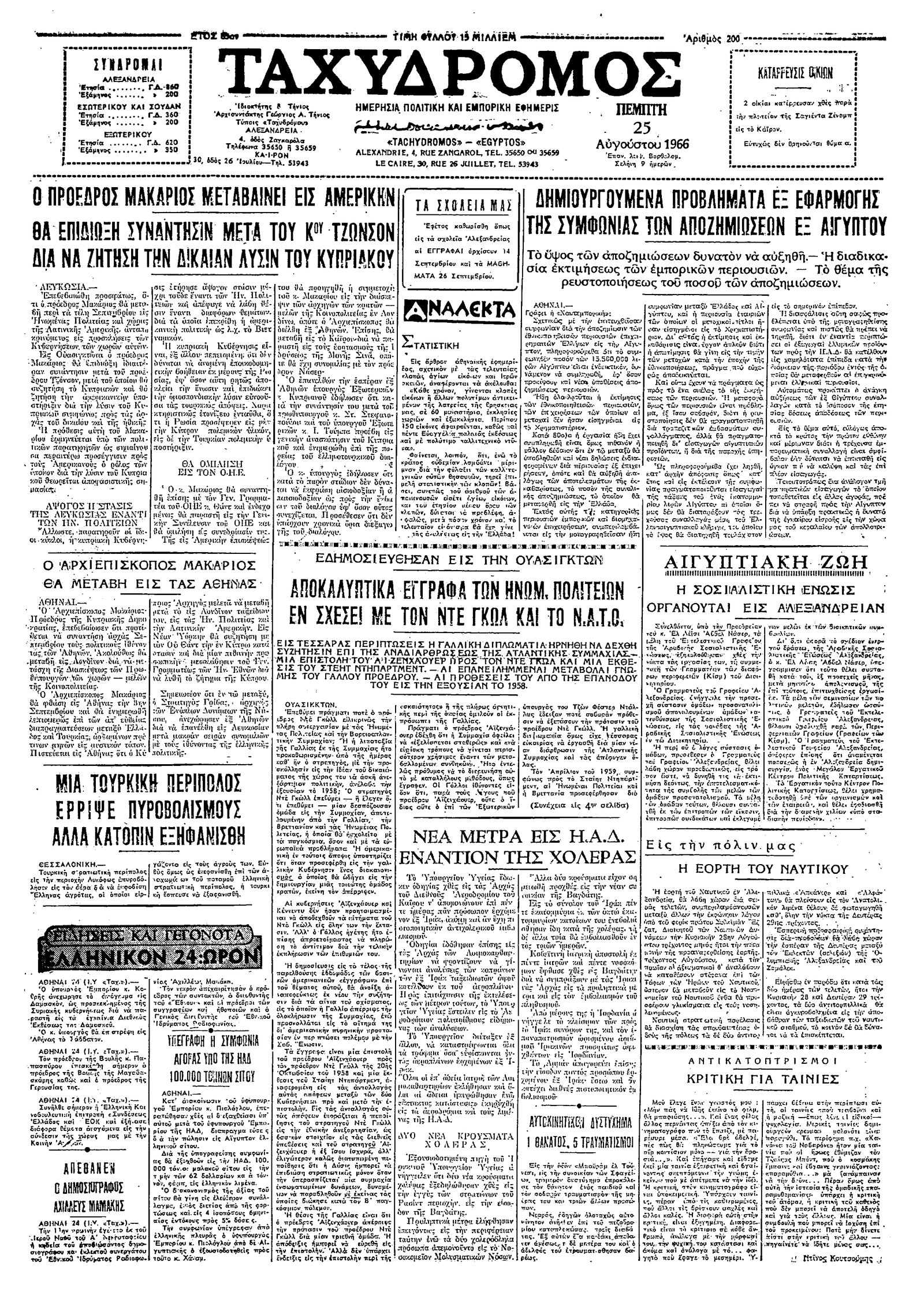 Ταχυδρόμος 25/08/1966