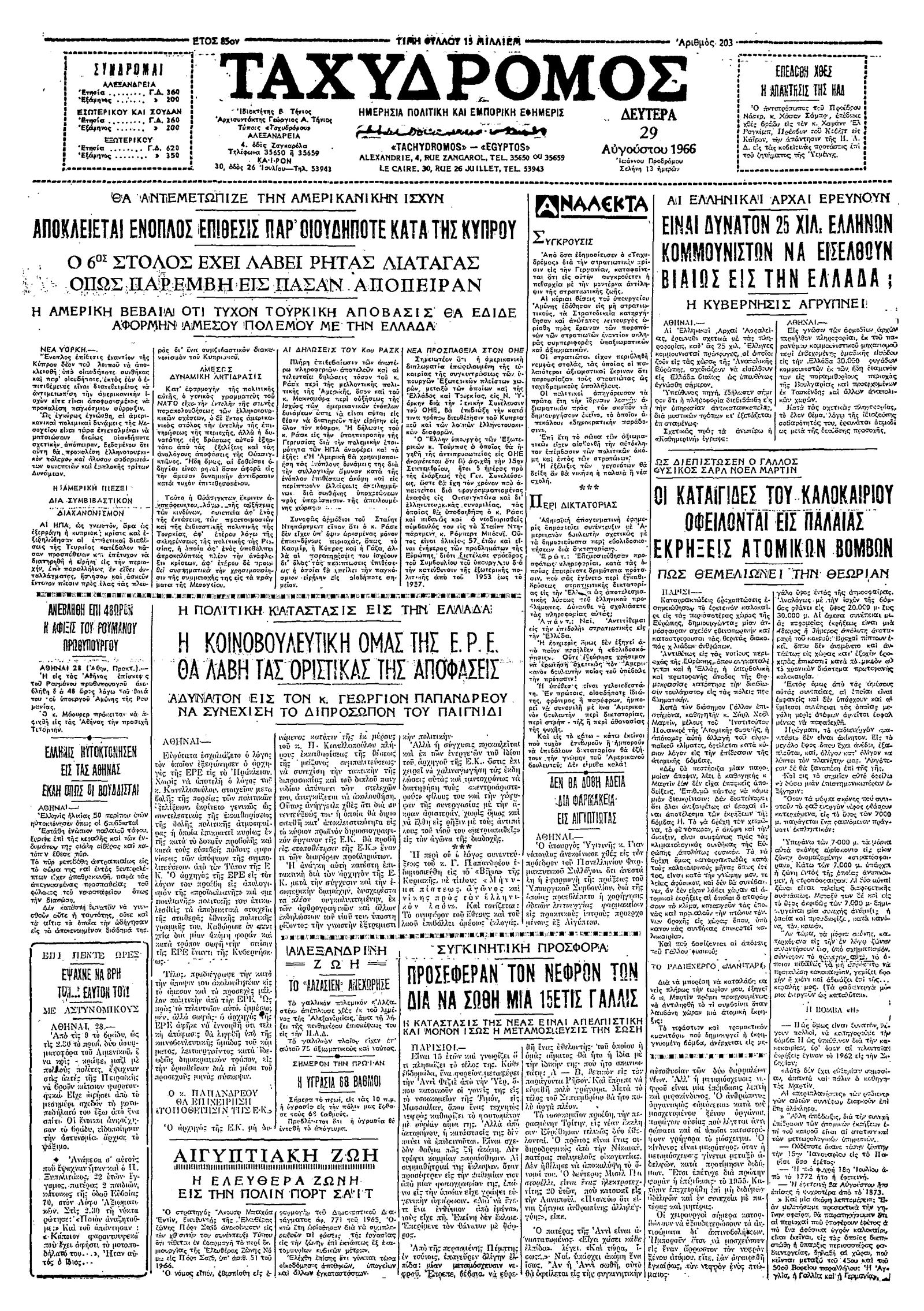 Ταχυδρόμος 29/08/1966