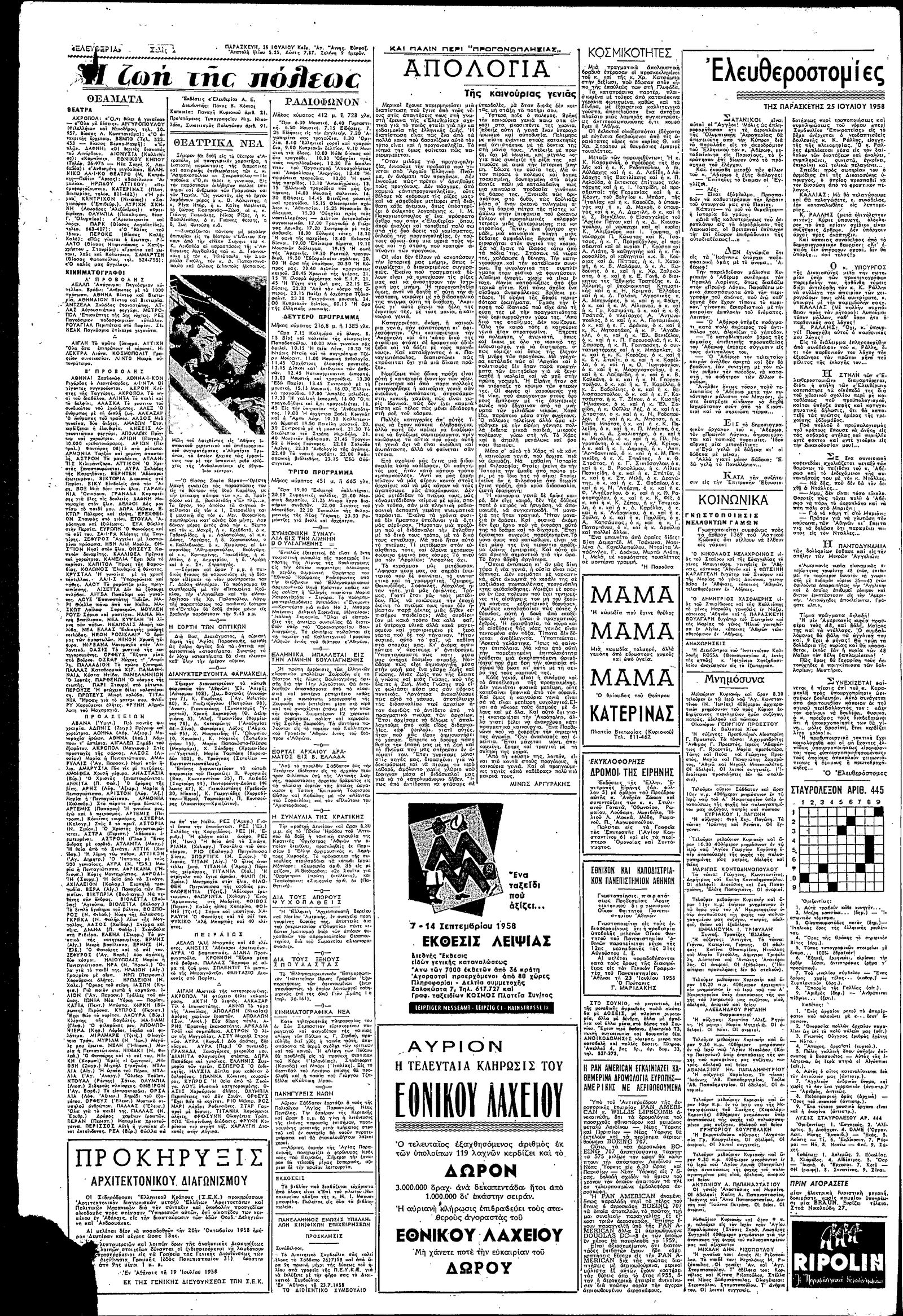 Ελευθερία 25/07/1958