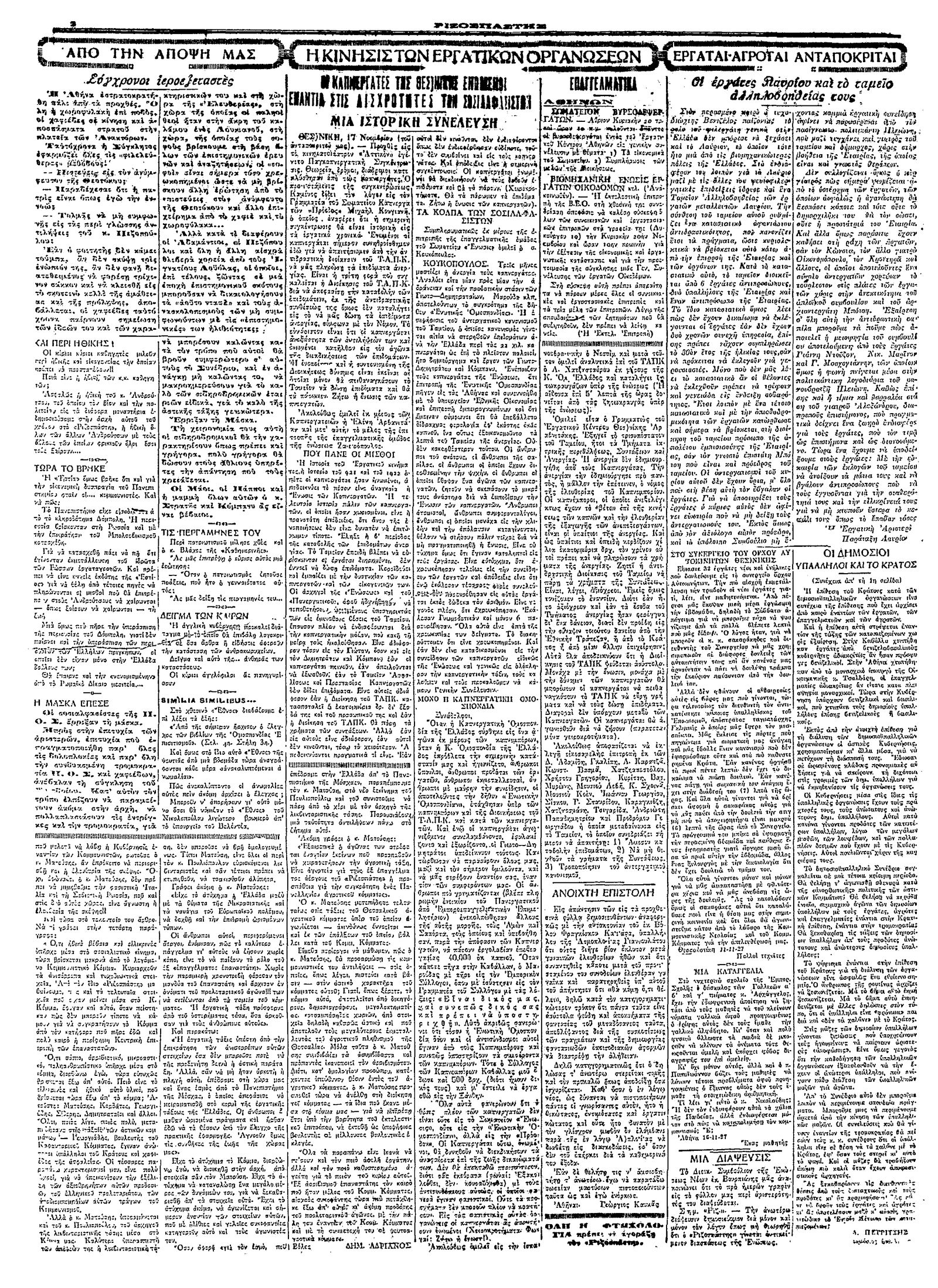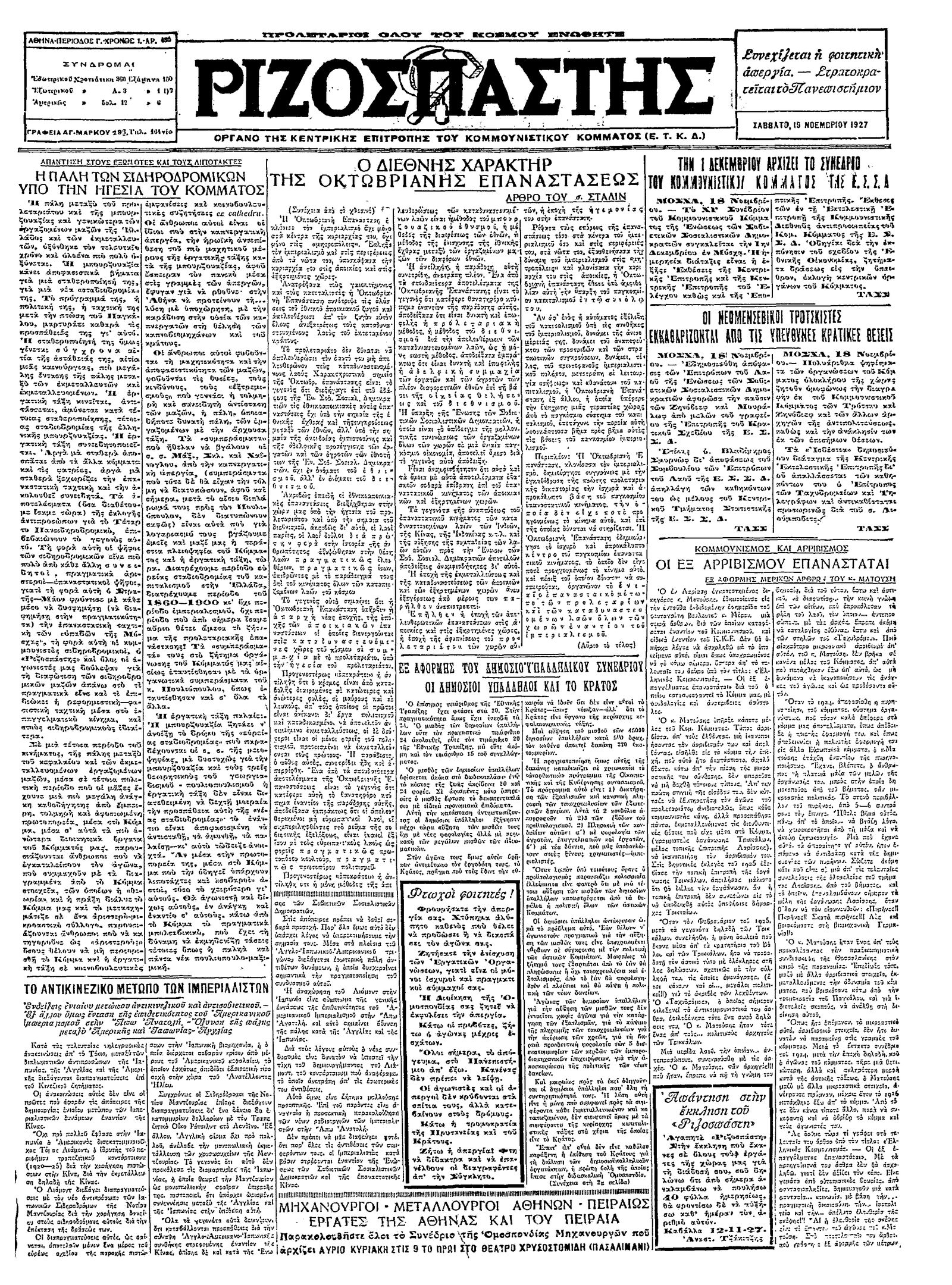 Ριζοσπάστης 19/11/1927