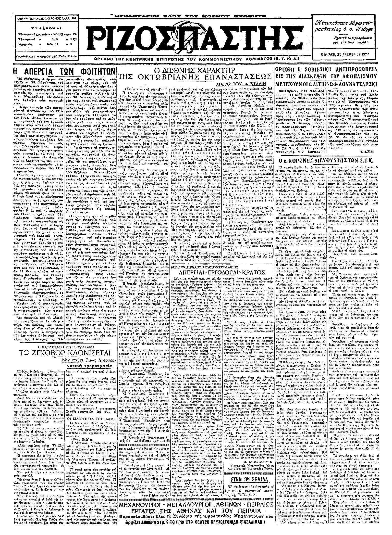 Ριζοσπάστης 20/11/1927