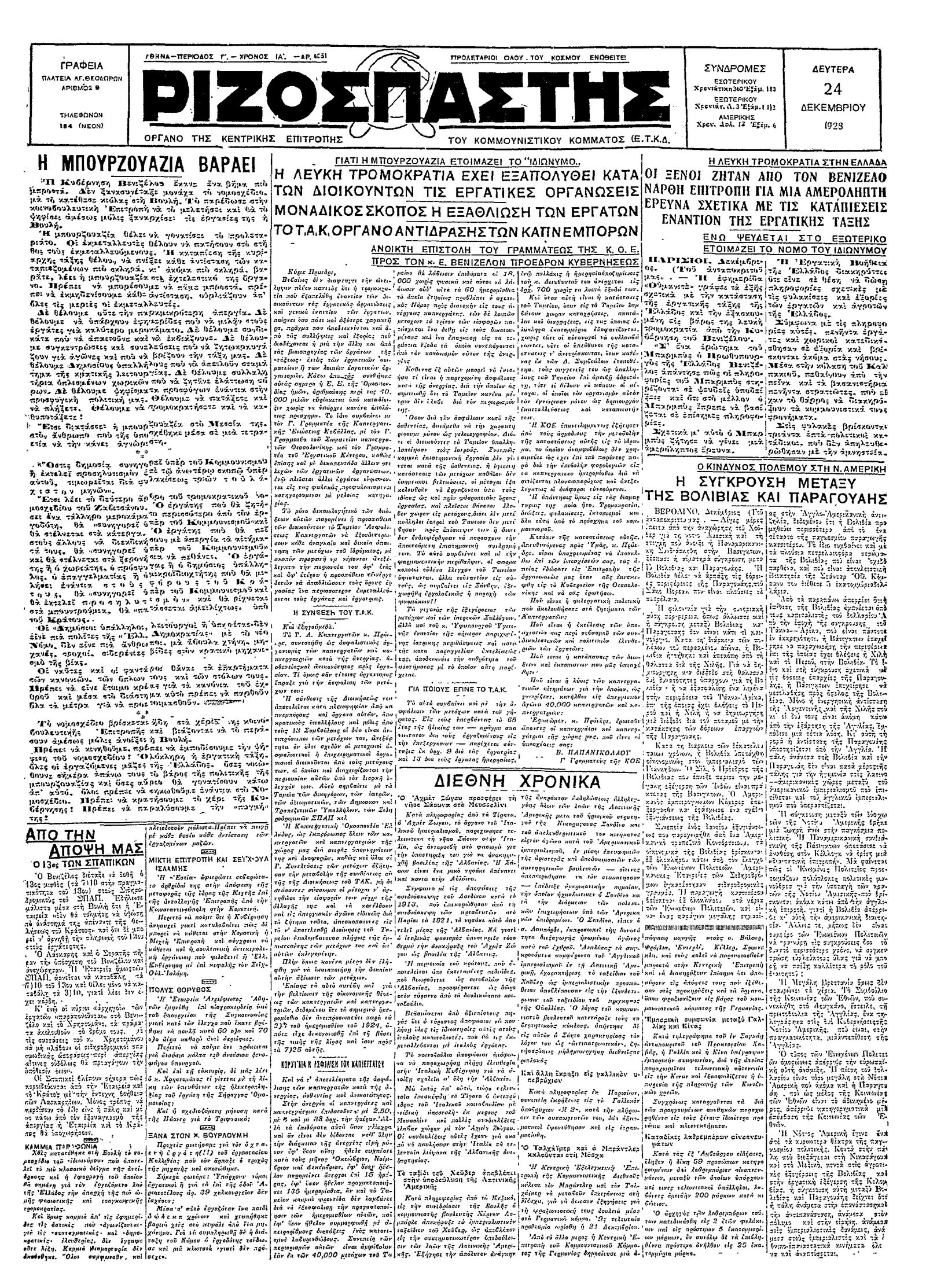Ριζοσπάστης 24/12/1928