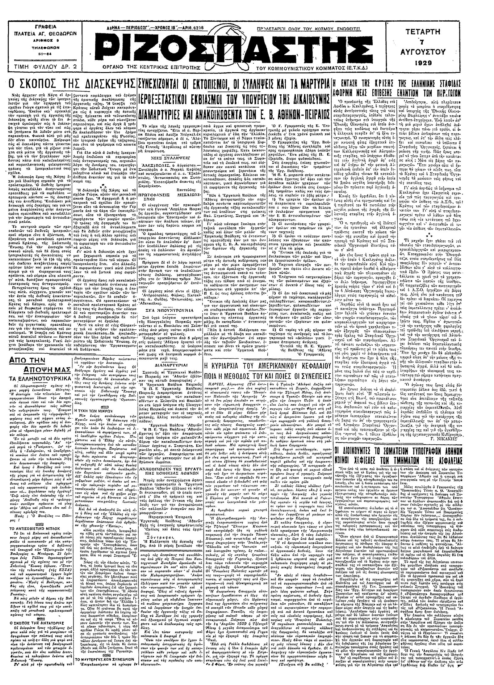 Ριζοσπάστης 07/08/1929