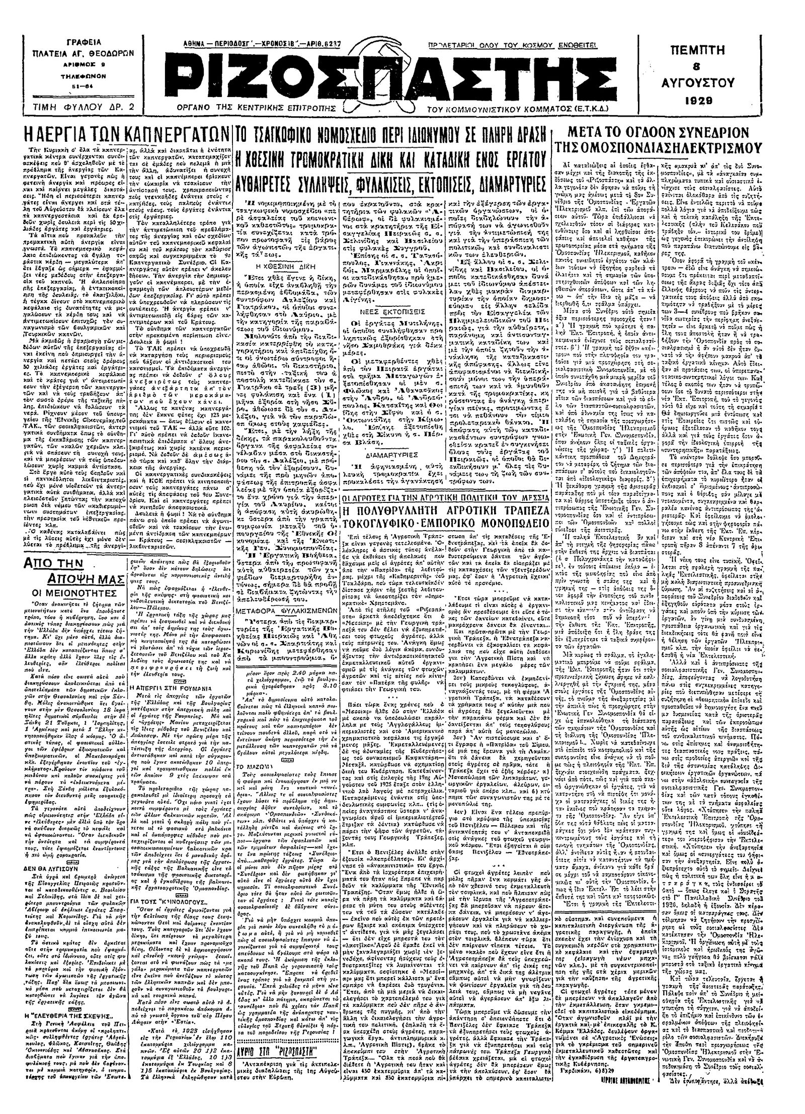 Ριζοσπάστης 08/08/1929