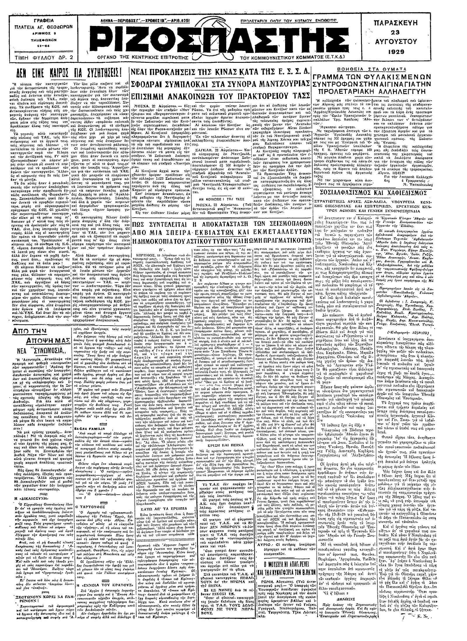 Ριζοσπάστης 23/08/1929