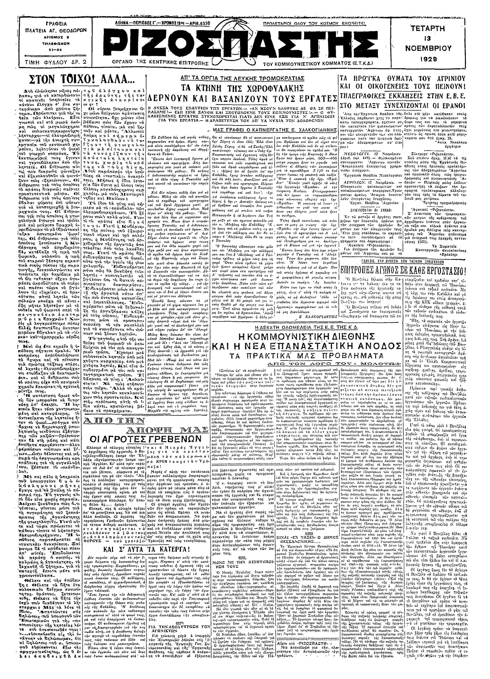 Ριζοσπάστης 13/11/1929
