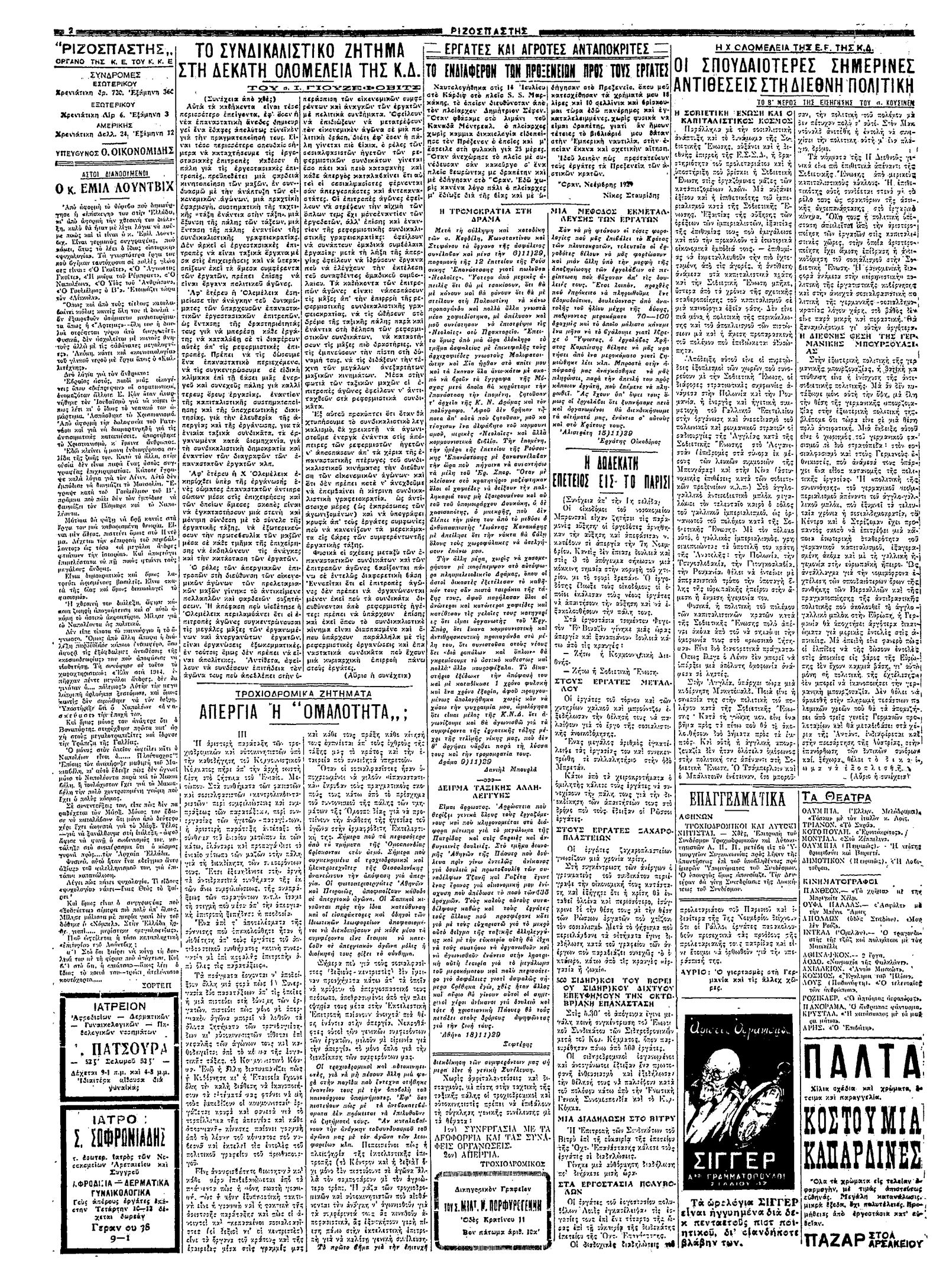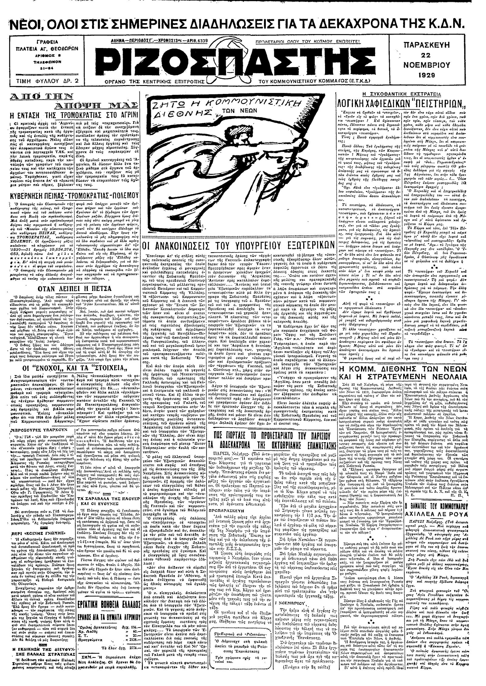 Ριζοσπάστης 22/11/1929