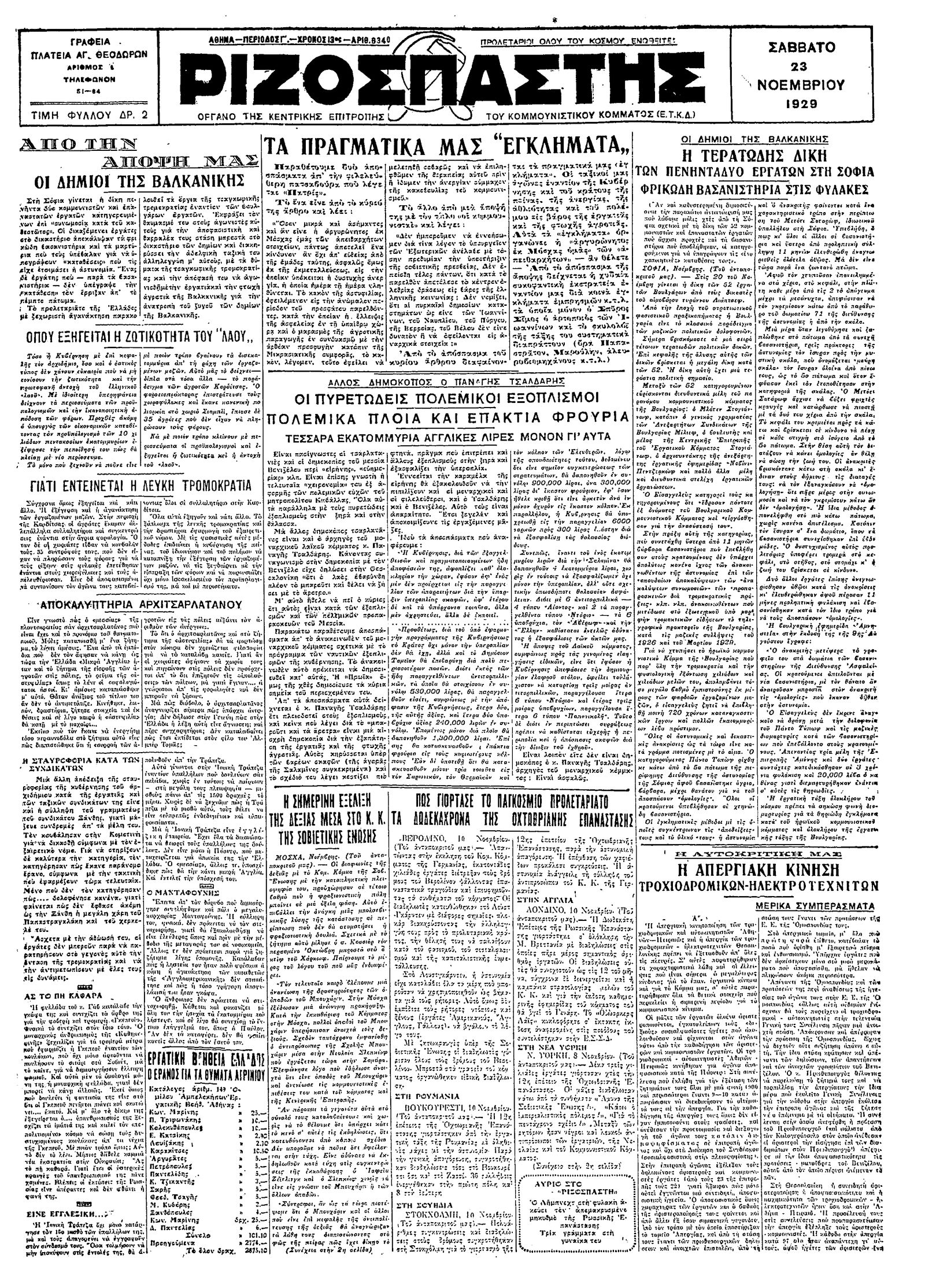 Ριζοσπάστης 23/11/1929