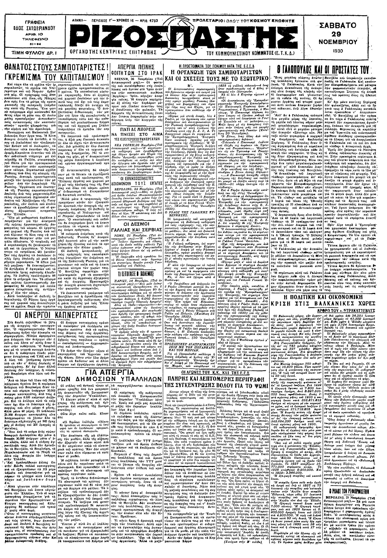 Ριζοσπάστης 29/11/1930