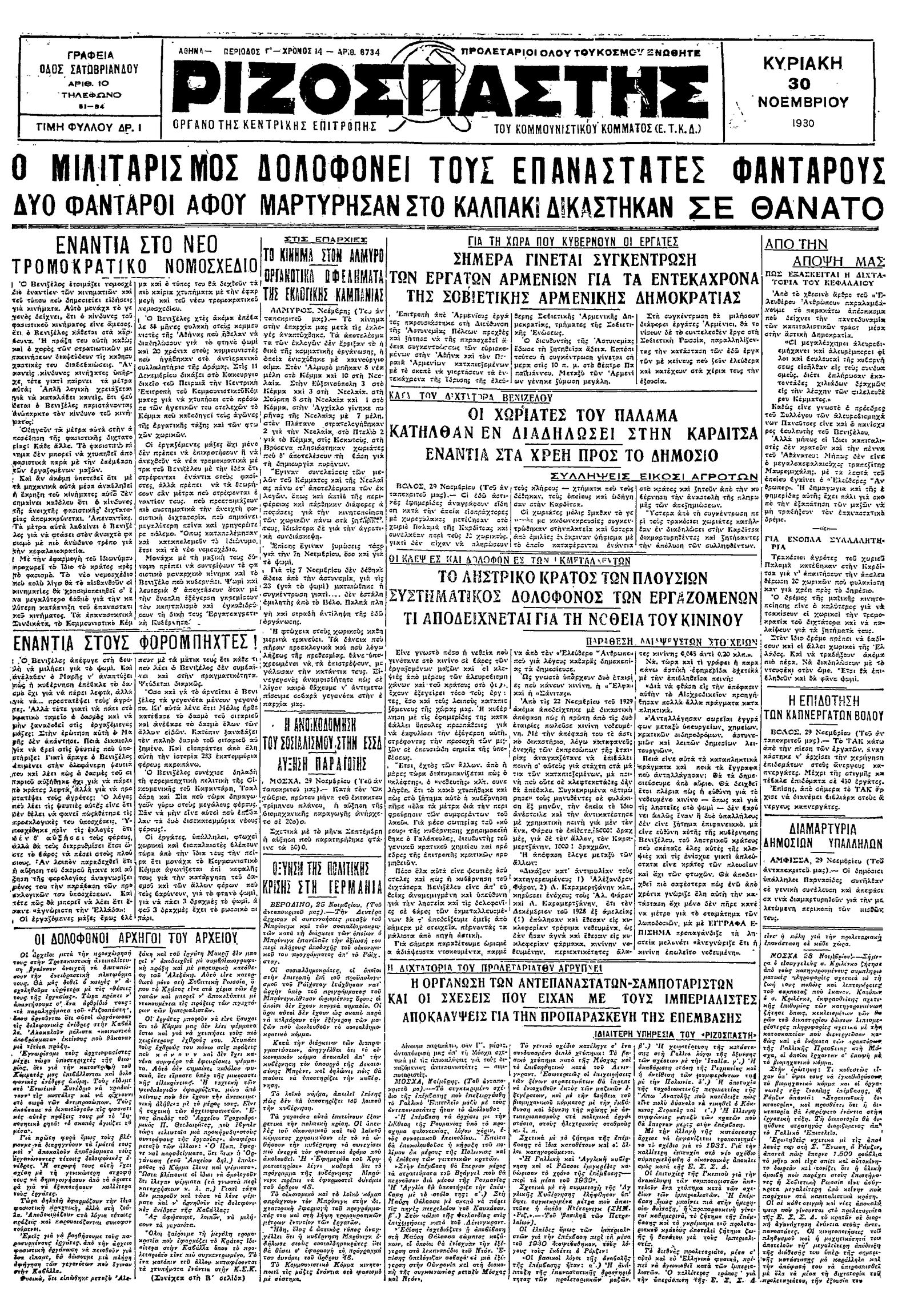 Ριζοσπάστης 30/11/1930