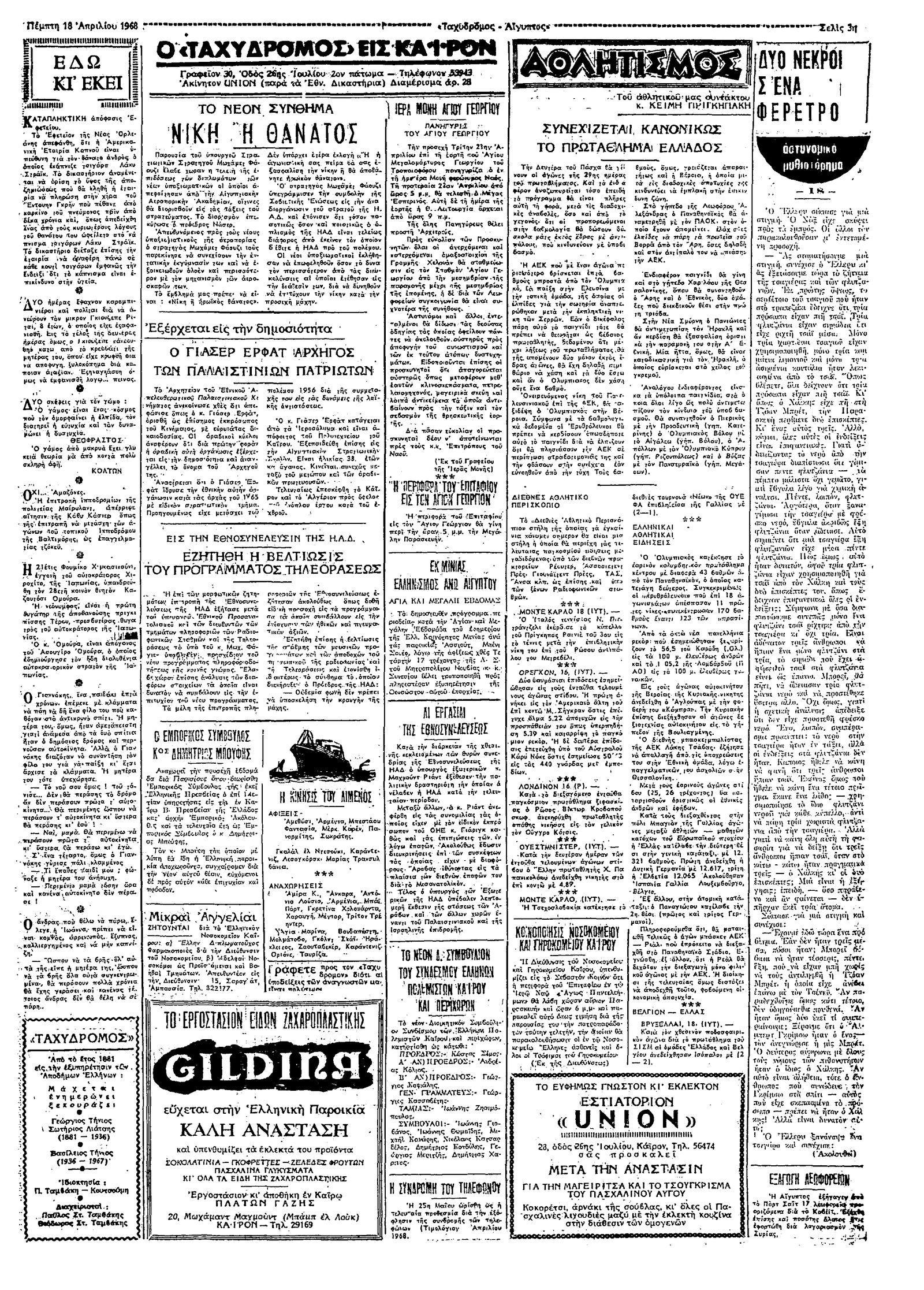 Ταχυδρόμος 18/04/1968