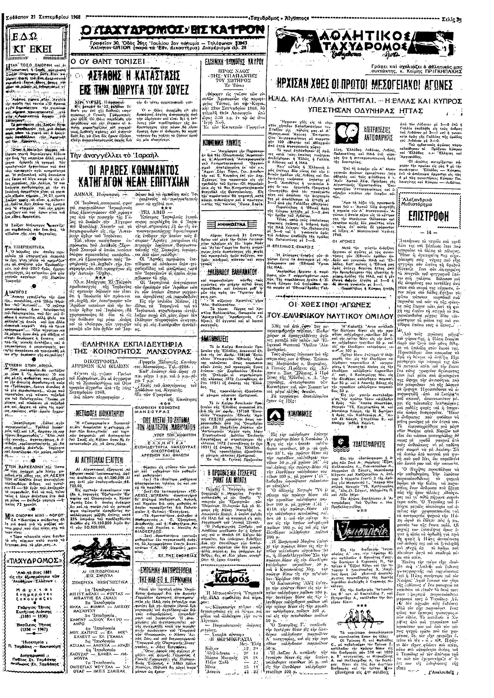 Ταχυδρόμος 21/09/1968
