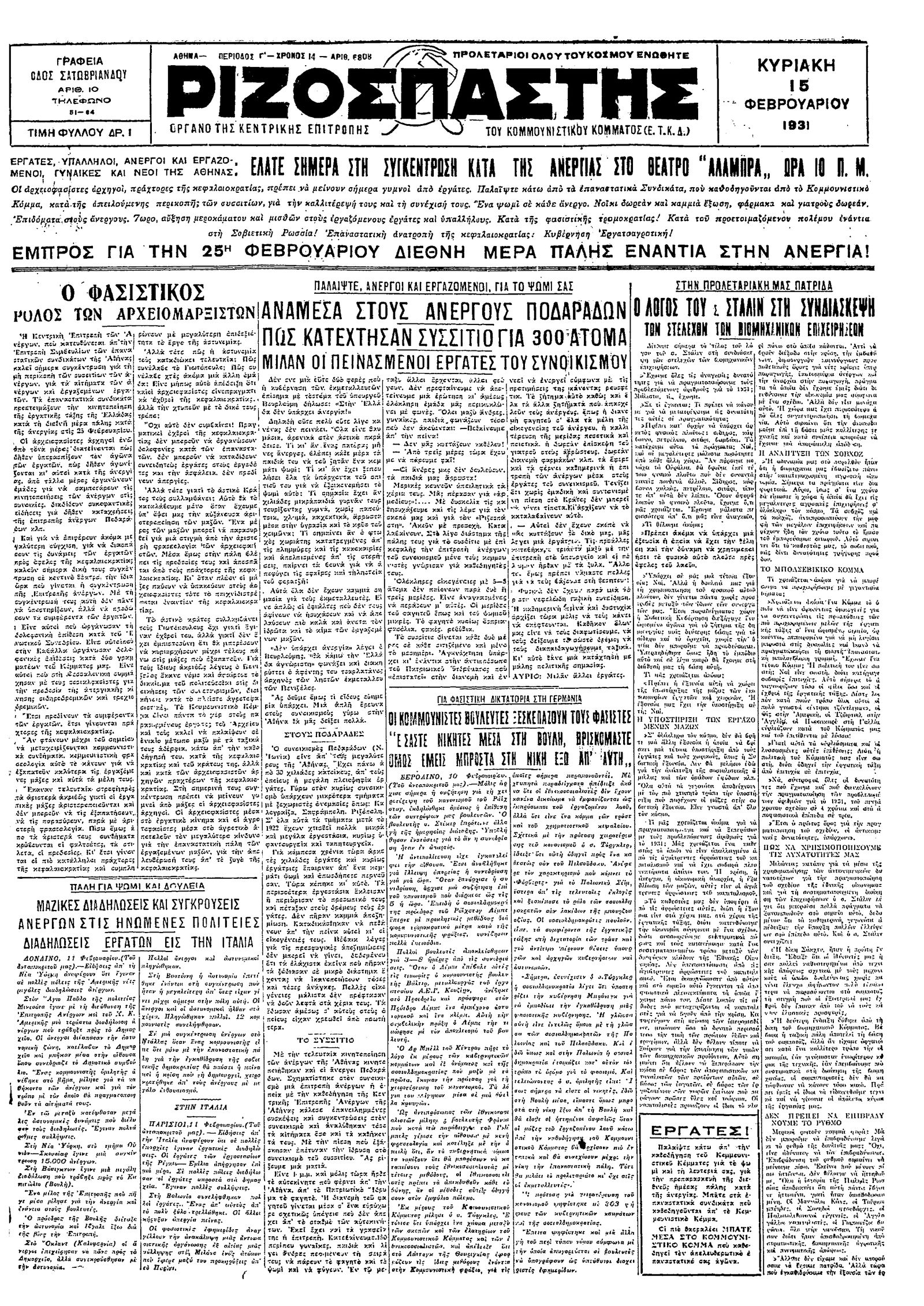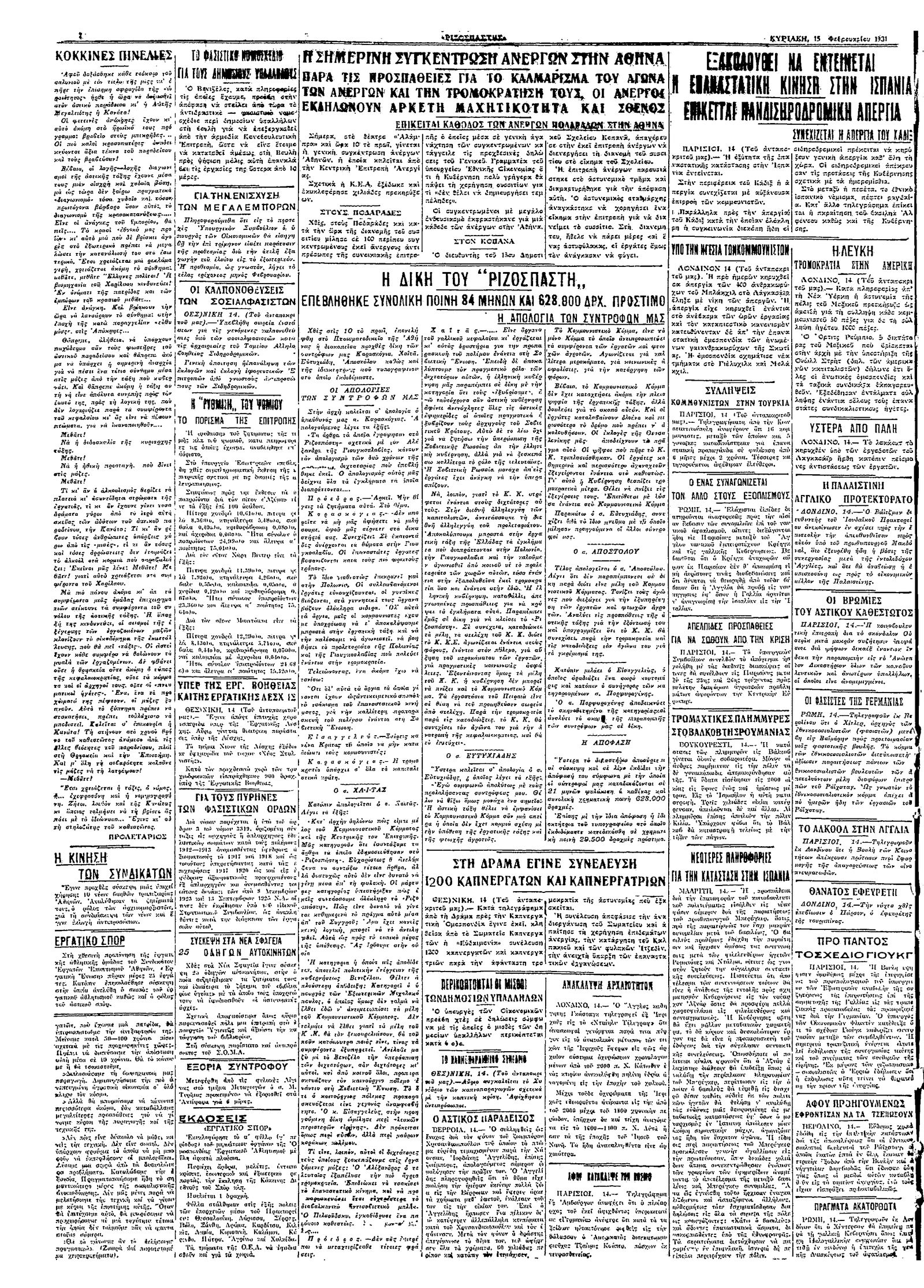 Ριζοσπάστης 15/02/1931