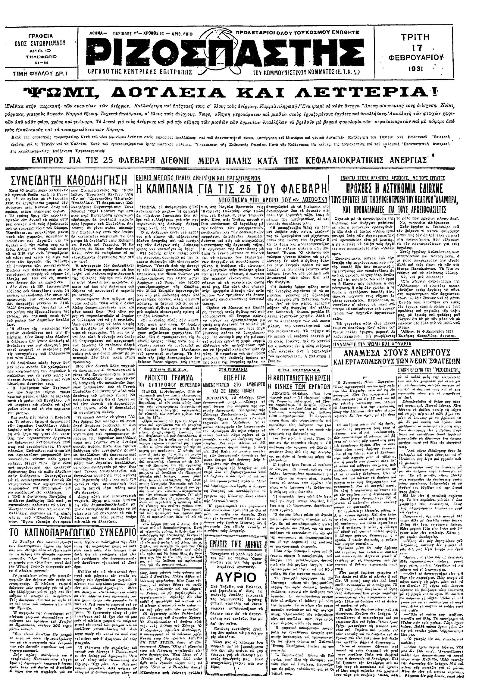 Ριζοσπάστης 17/02/1931