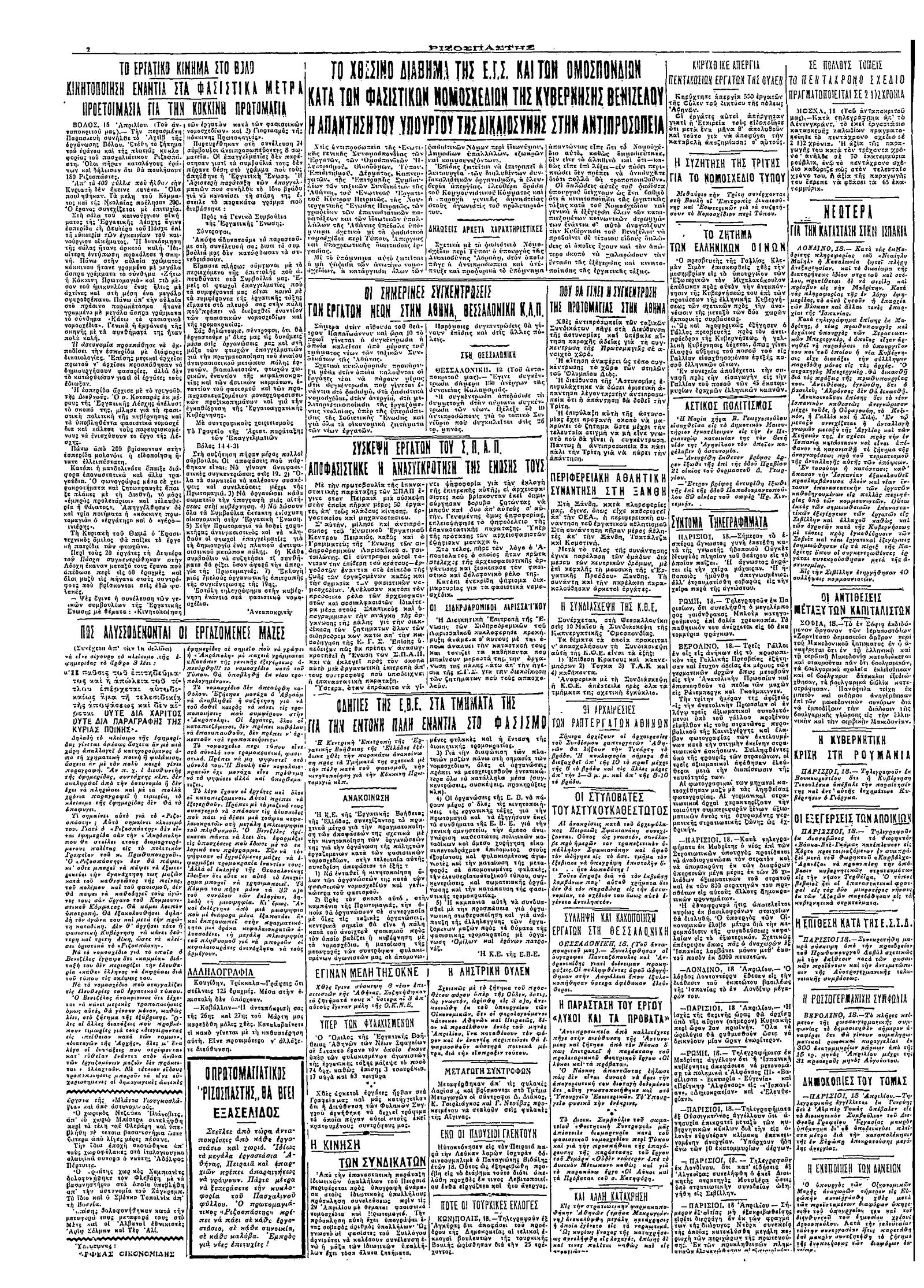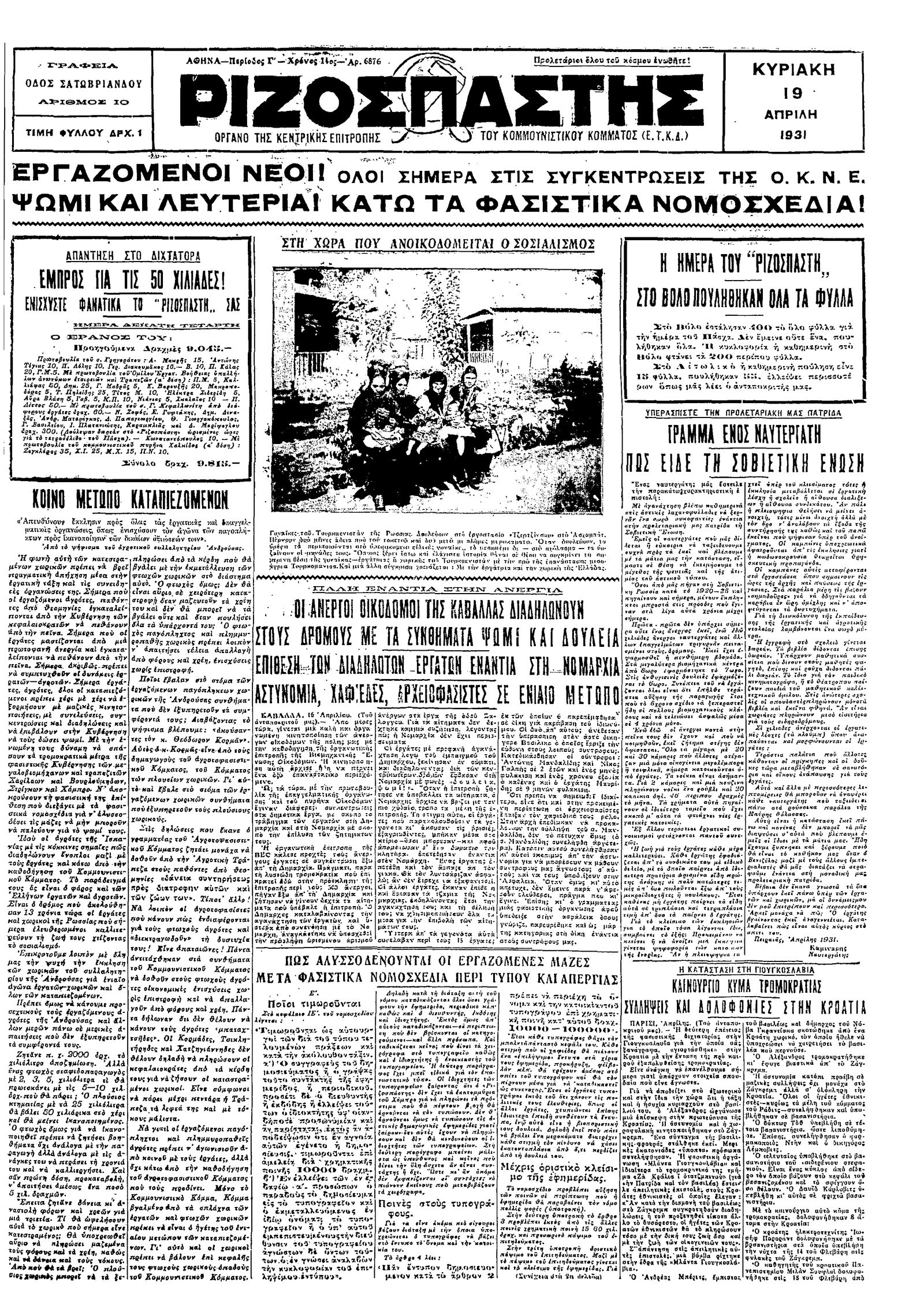 Ριζοσπάστης 19/04/1931