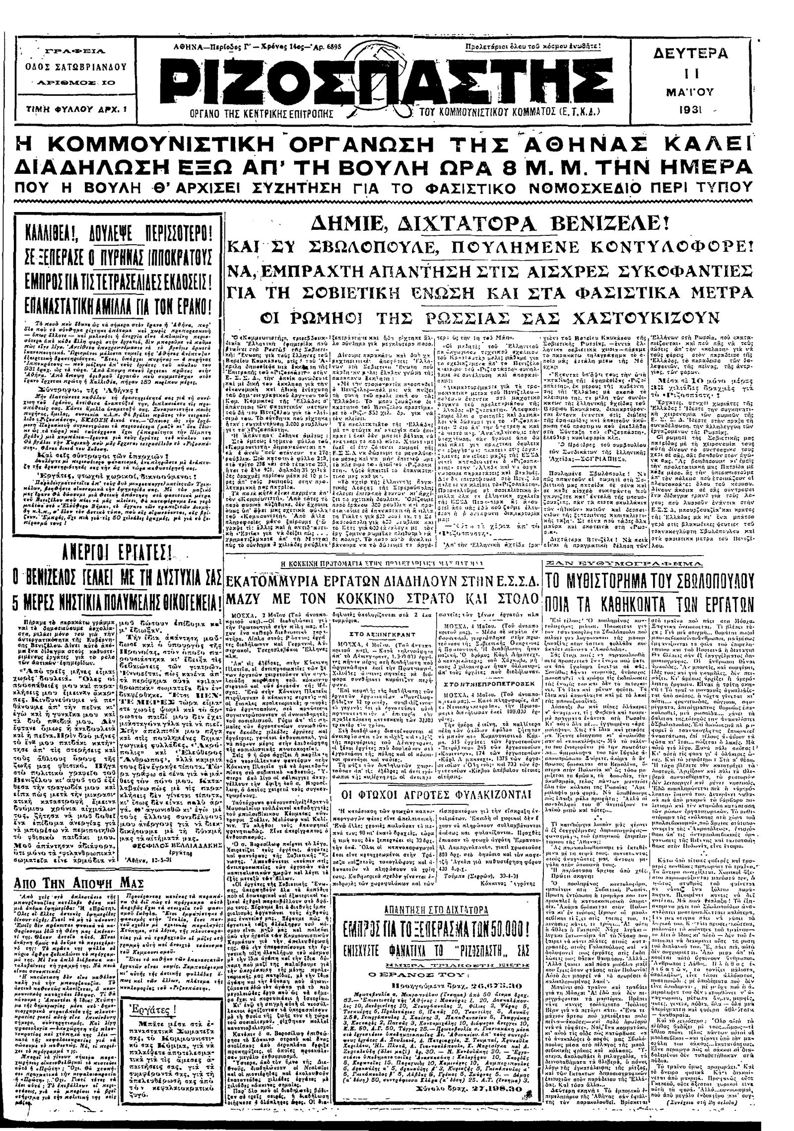 Ριζοσπάστης 11/05/1931