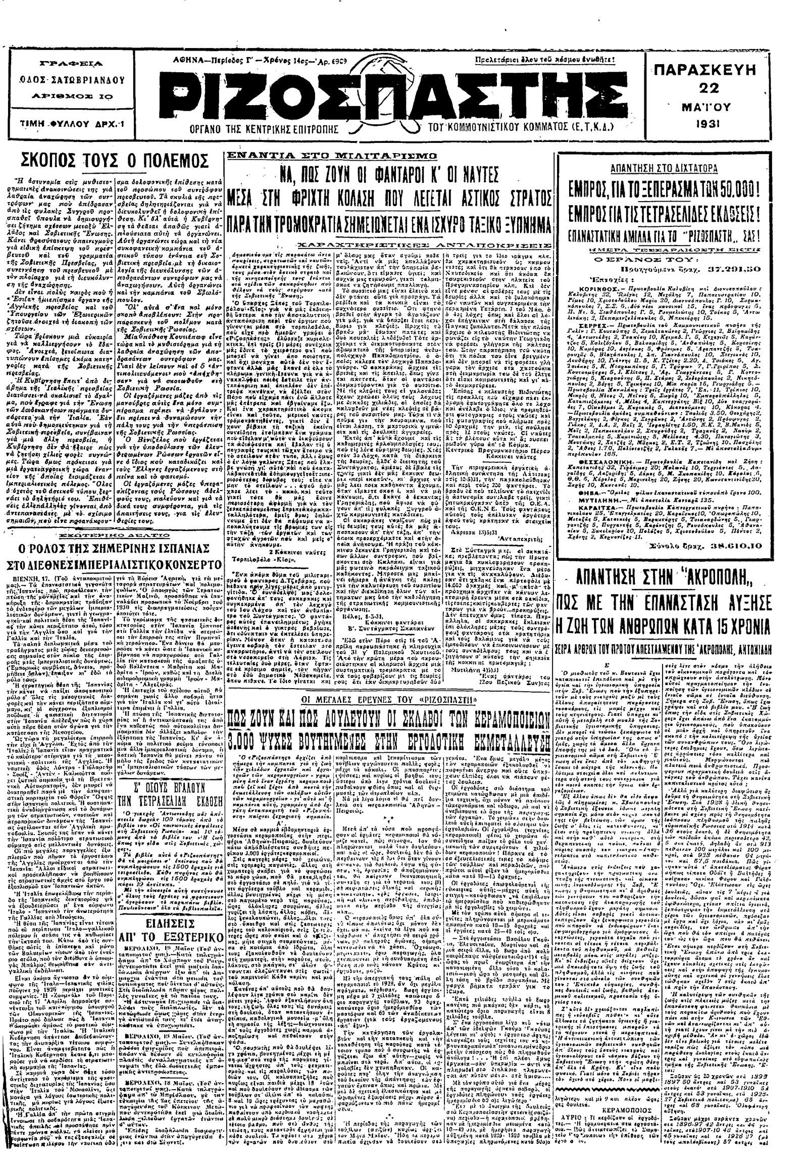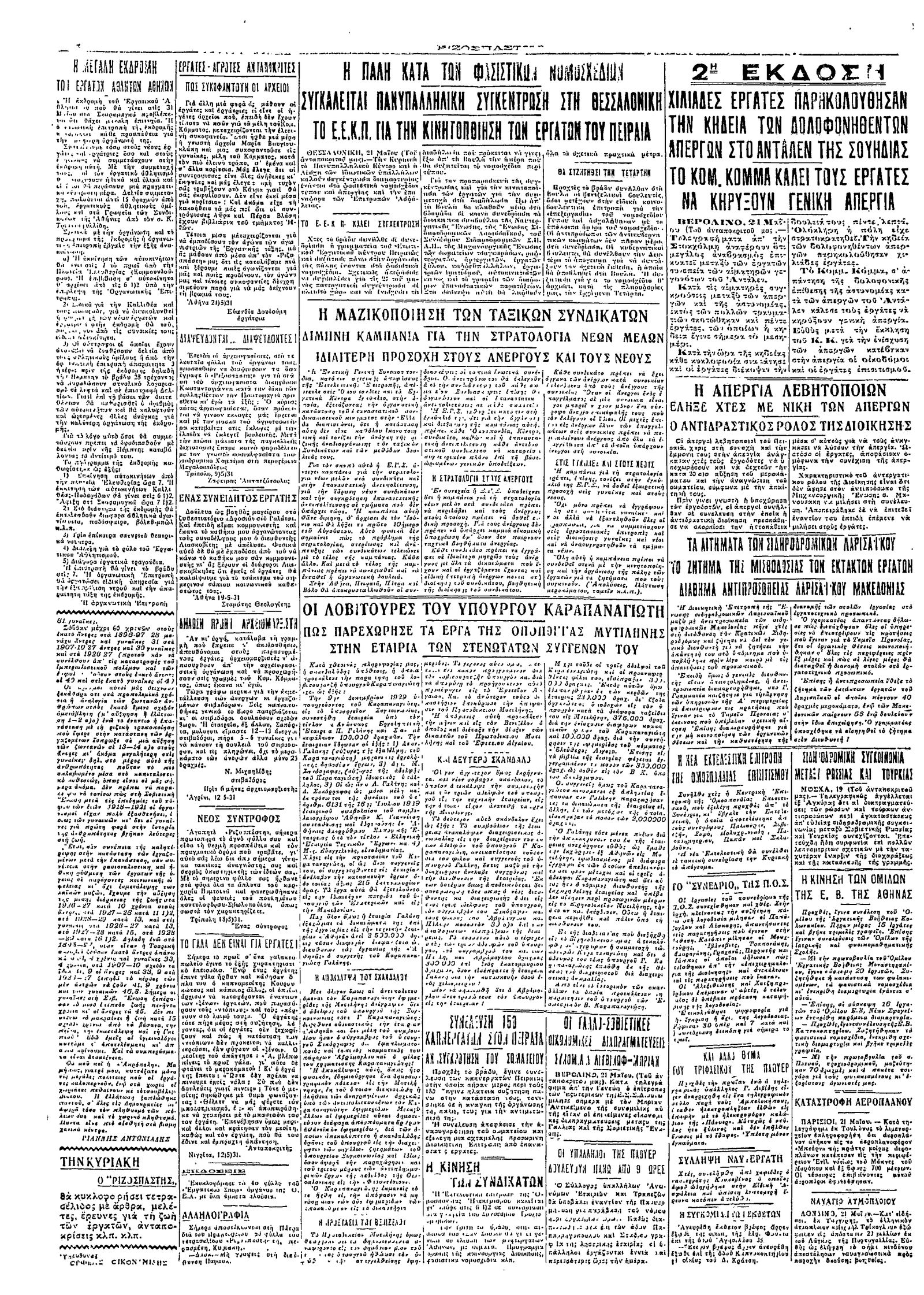 Ριζοσπάστης 22/05/1931