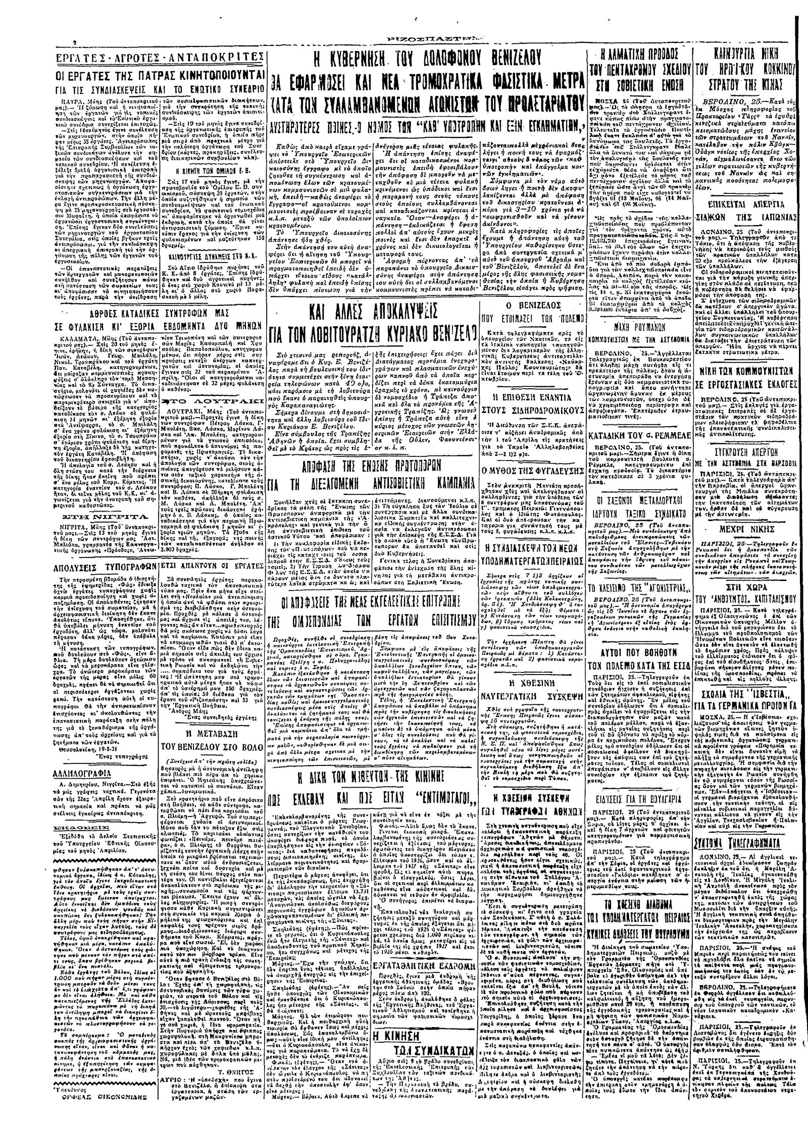 Ριζοσπάστης 26/05/1931