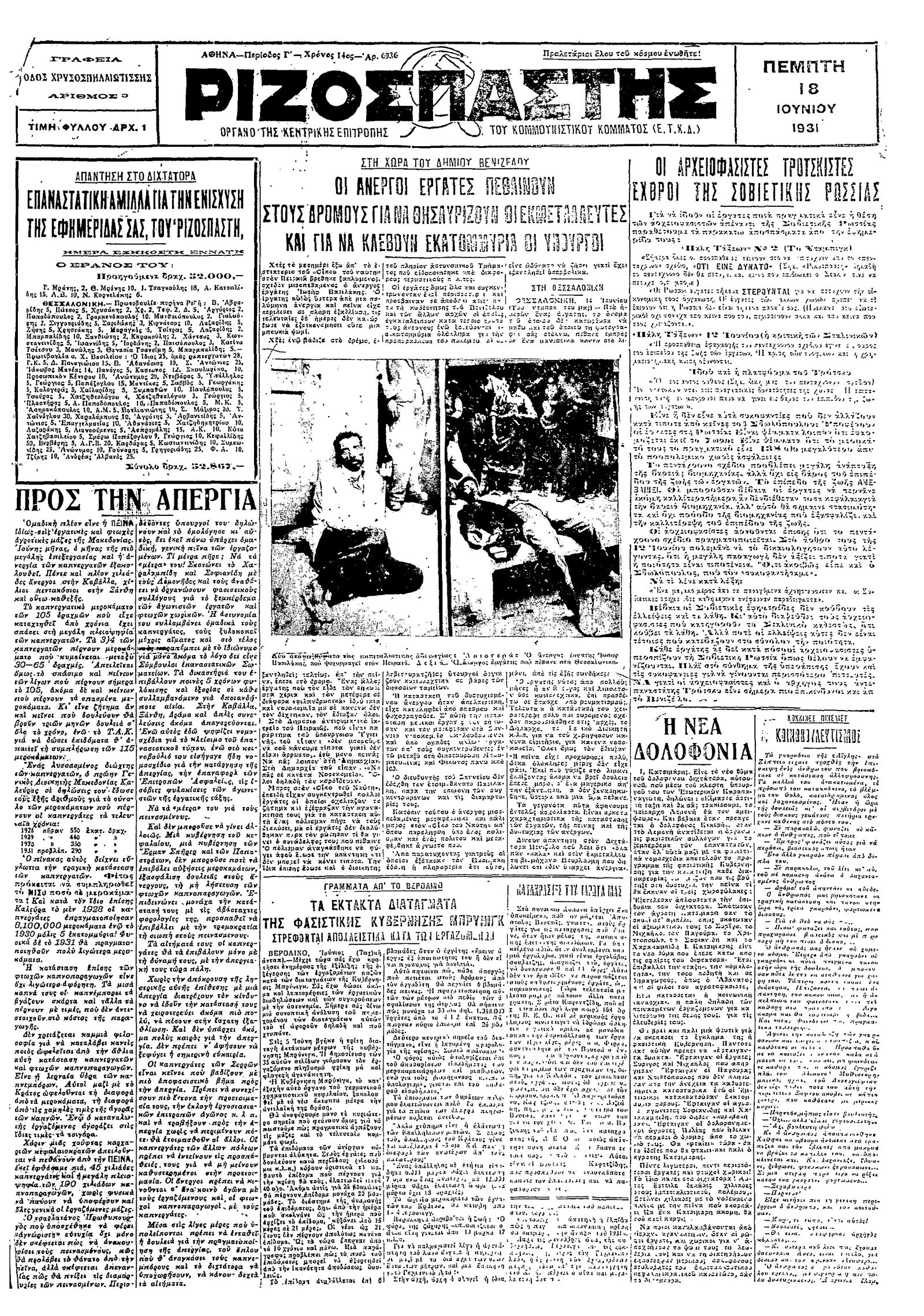 Ριζοσπάστης 18/06/1931